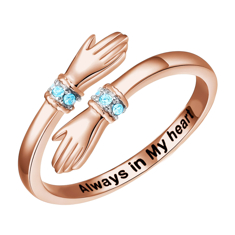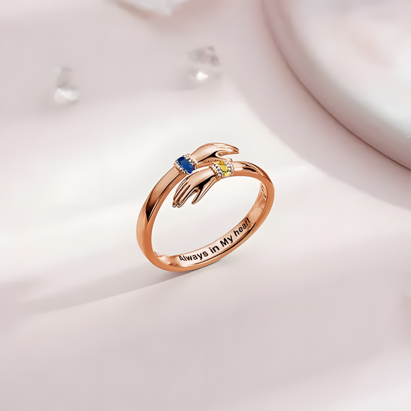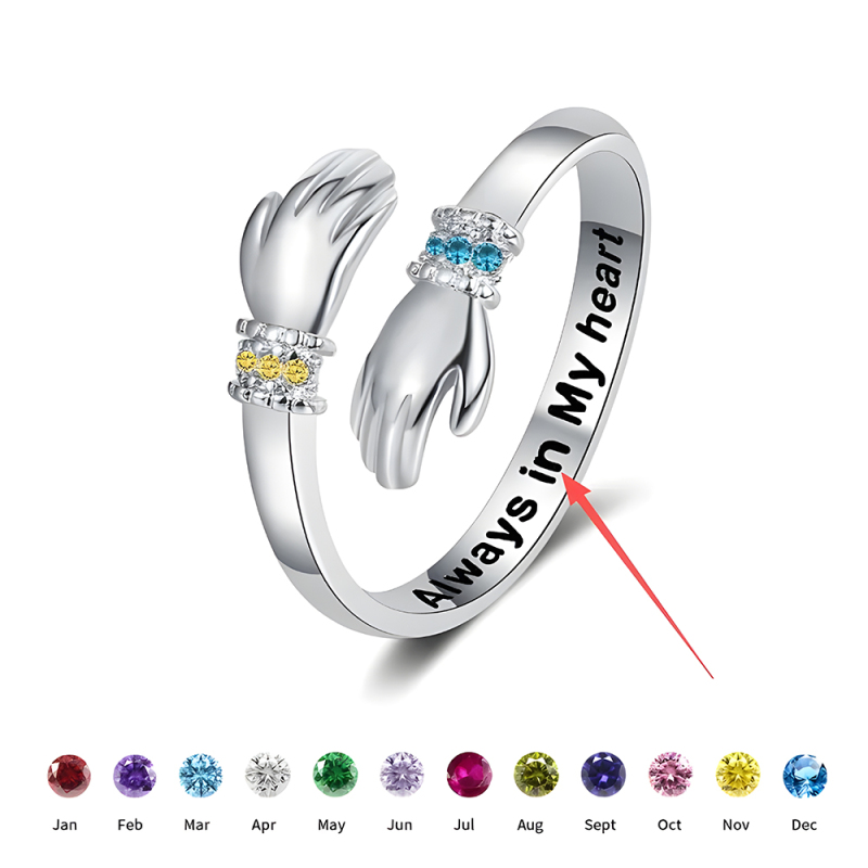 Celebre los momentos que importan con nuestro Anillo de abrazo personalizado y ajustable con piedra de nacimiento. Cada anillo cuenta con dos delicados brazos que abrazan tu dedo, simbolizando amor, apoyo y conexión.