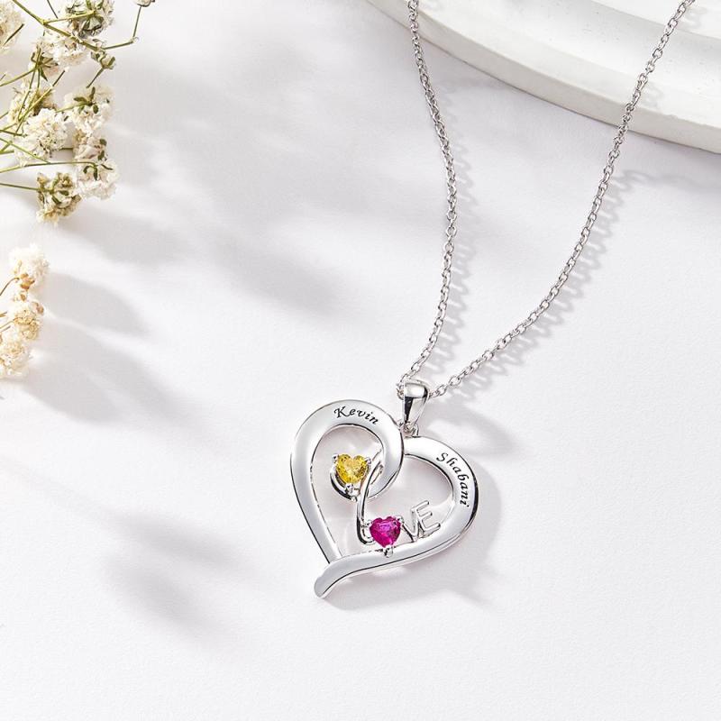 Collar De Corazón Con Piedra Natal Personalizada, Colgante De Amor Para Desfile De Moda Para Parejas