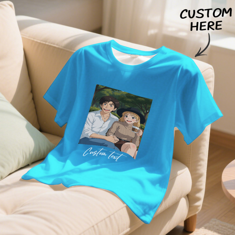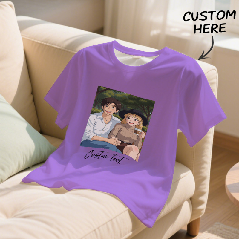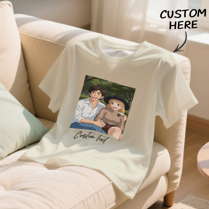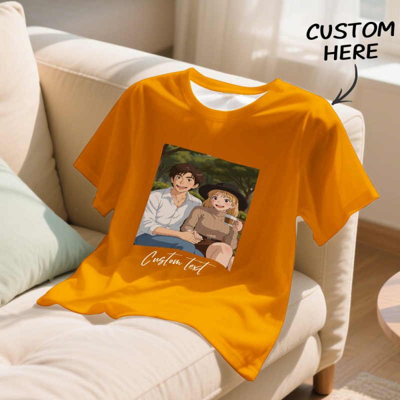 Camiseta Personalizada Con Foto Y Dibujo De Estilo De Dibujos Animados Con Texto Personalizado. Camiseta Personalizada Con Retrato De Anime. Regalo Para Mamá, Papá Y Niños.