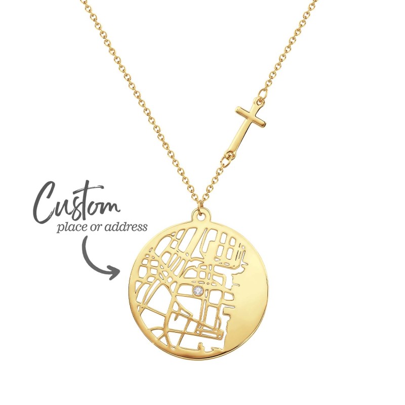 Captura los recuerdos de tus lugares especiales con nuestro Collar Mapa Redondo Personalizado. Este romántico dije dibuja el contorno de un mapa personalizado dentro de un corazón, convirtiendo tus momentos favoritos en una joya para llevar contigo. Elige entre tres estilos de cadena -Lisa, Cruzada o con Cuentas en Proyección- para que se adapte a su estilo, y añade un toque de brillo con gemas opcionales para un resplandor aún más romántico. Perfecto como regalo de aniversario o una sorpresa especial para ella, este collar es un recuerdo atemporal que atesorará.