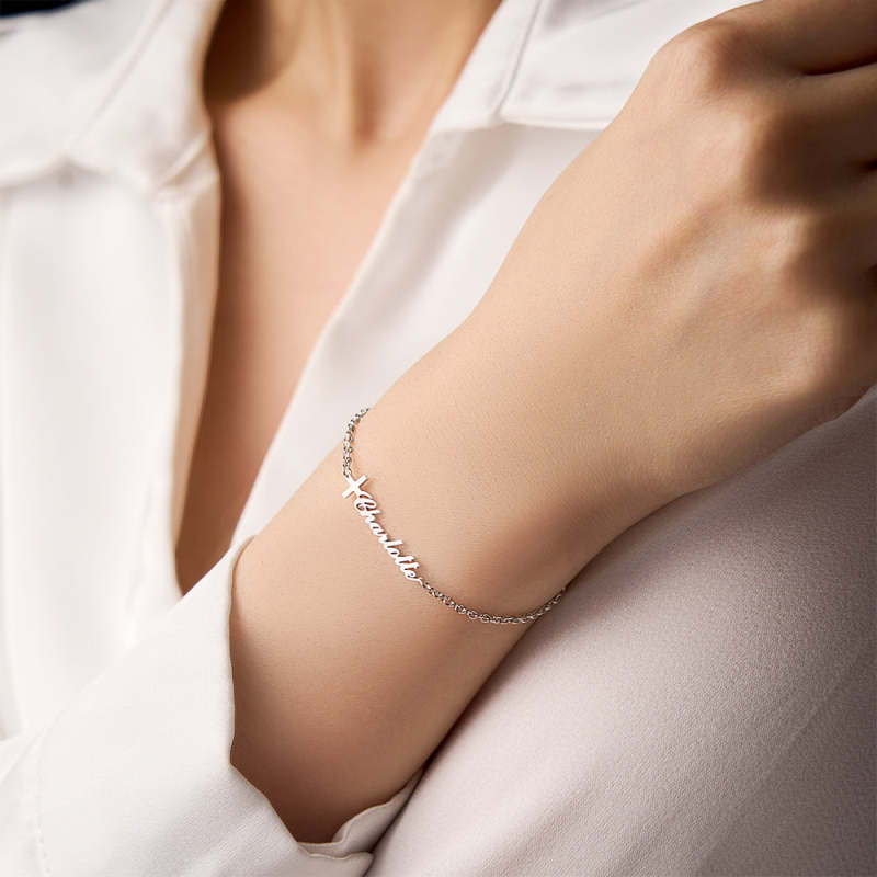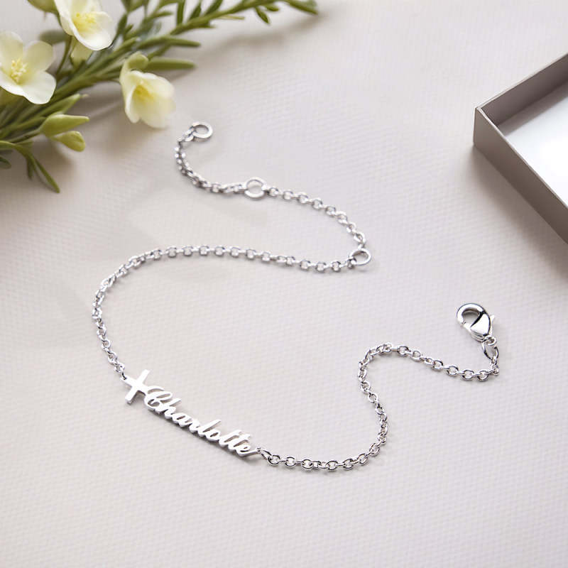 Elaborada con cuidado y atención al detalle, esta pulsera no es solo una pieza de joyería, sino un símbolo significativo de fe y amor. Con un delicado dije de cruz y personalizable con el nombre de su elección, sirve como un recordatorio personal del viaje espiritual y la devoción de cada uno. Fabricada con materiales de alta calidad, esta pulsera está diseñada para ser duradera y duradera, lo que garantiza que podrá ser apreciada durante años. Ya sea que lo use a diario como una sutil expresión de fe o lo guarde para ocasiones especiales, seguramente será un tesoro para quien lo reciba.