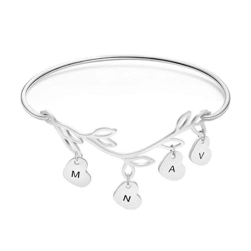 Soufeel tiene un montón de opciones de pulseras para que elijas. Con esta pulsera de árbol especial, puedes personalizar la cantidad de corazones que necesites, de 1 a 6. Personaliza tu pulsera de árbol genealógico con las iniciales de tus hijos, tú, tu cónyuge, padres. Además de las pulseras grabadas, Soufeel ofrece una variedad de pulseras con fotos y pulseras con nombres.