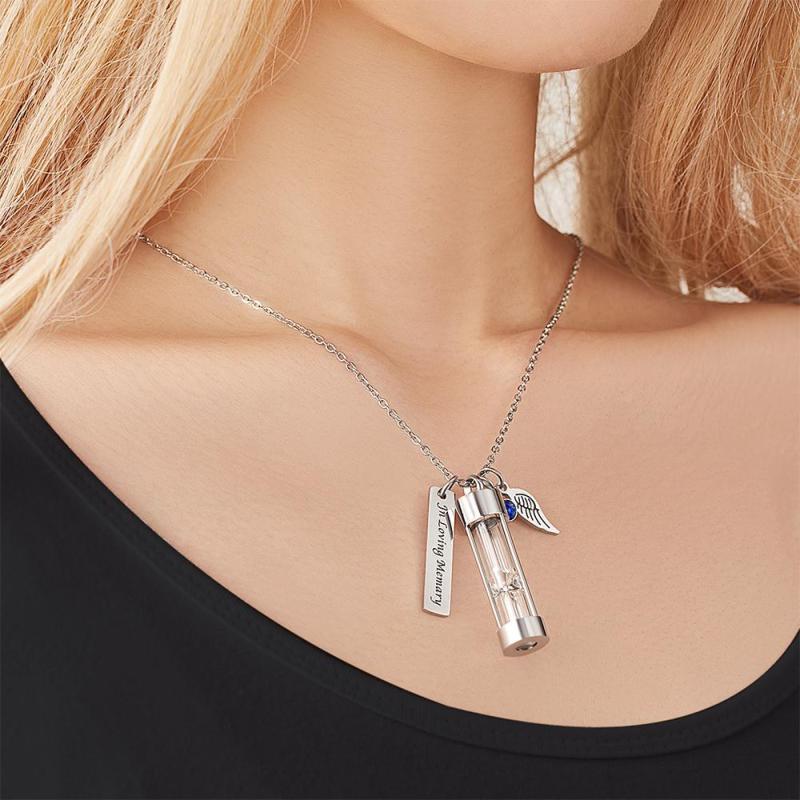 Hecho de un reloj de arena de forma especial, puede contener una pequeña parte de perfume, cabello / piel, cenizas, flores secas u otras cosas. Se puede utilizar como un regalo exquisito para Navidad, Acción de Gracias, cumpleaños o un día especial. Cerca de tu corazón, aunque el tiempo desaparecerá, el amor durará para siempre.