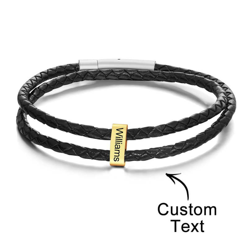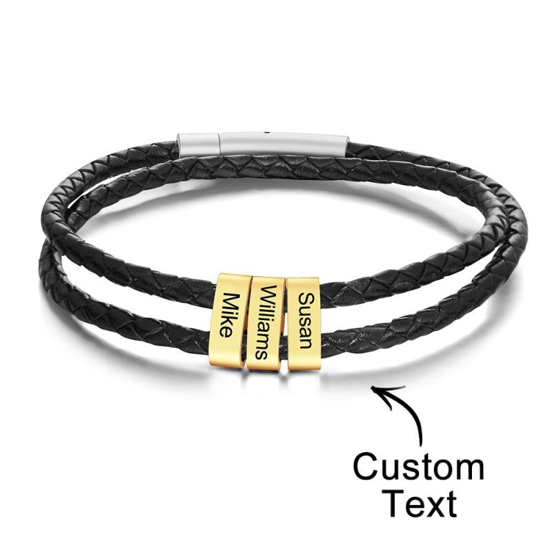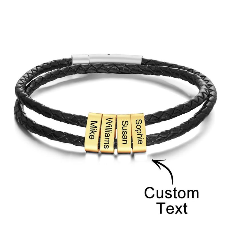 Pulsera Grabada Personalizada Cuentas De Cuero Trenzado Regalos Para Hombres