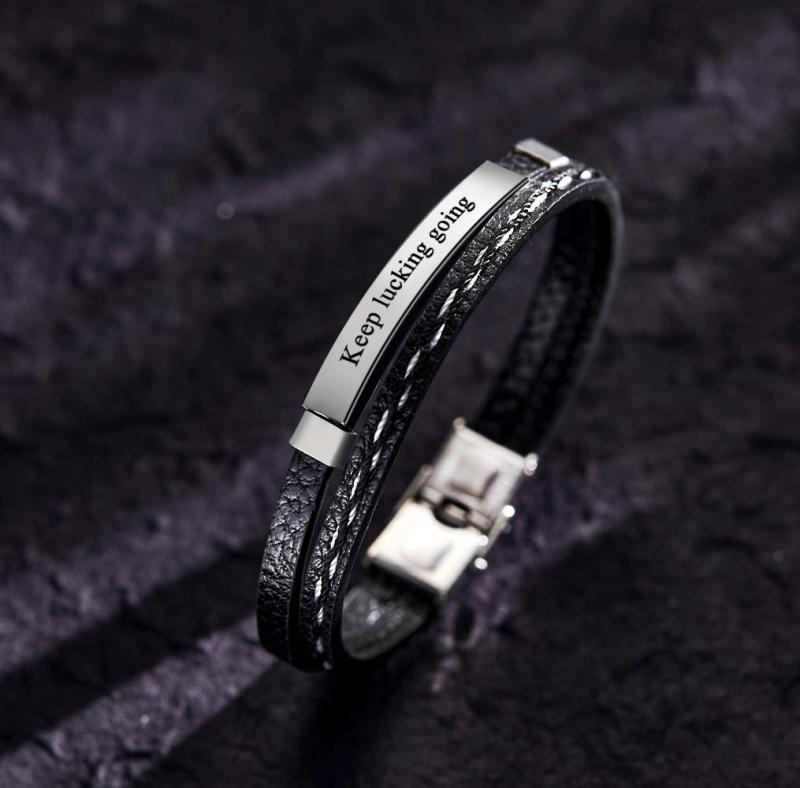 Pulsera Grabada Personalizada Regalos Creativos Para Parejas De Cuero Punk
