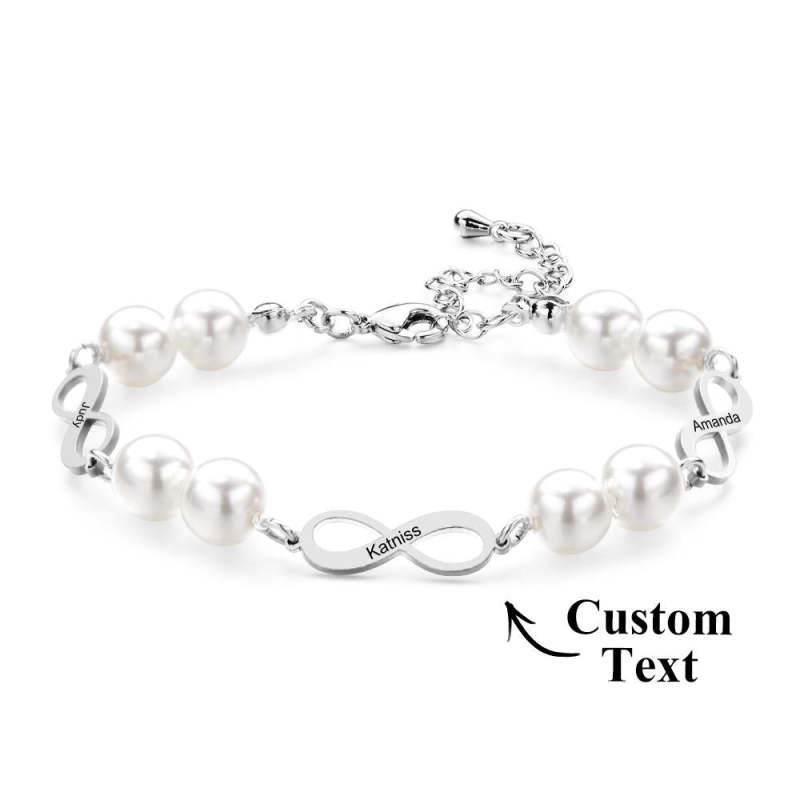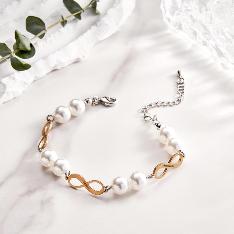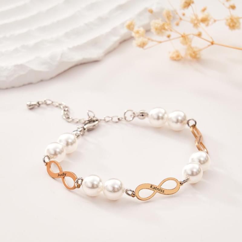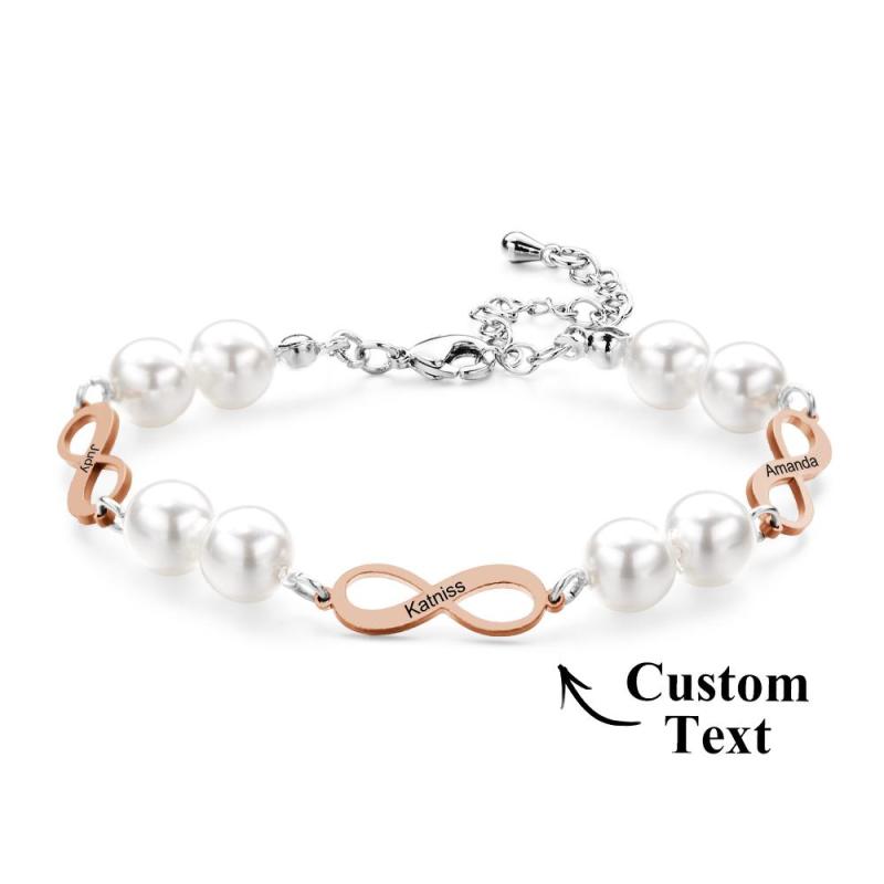 Pulsera Grabada Personalizada Infinity Love Pearl Regalo Romántico