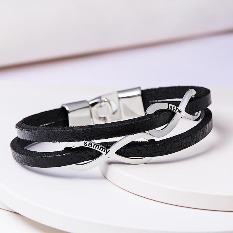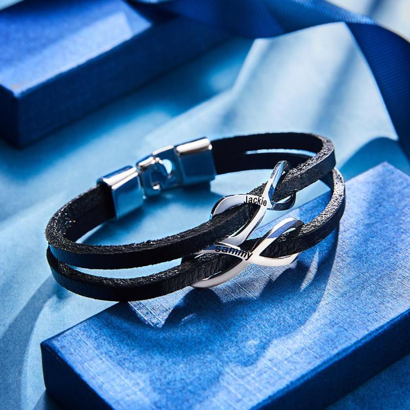 Pulsera Grabada Personalizada Símbolo Infinito Cuero Hombres Regalos