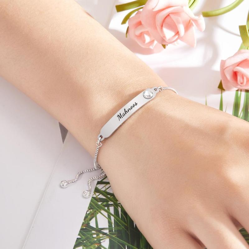 Pulsera Grabada Personalizada Pulsera Con Nombre Regalos De Diamantes De Imitación Simples