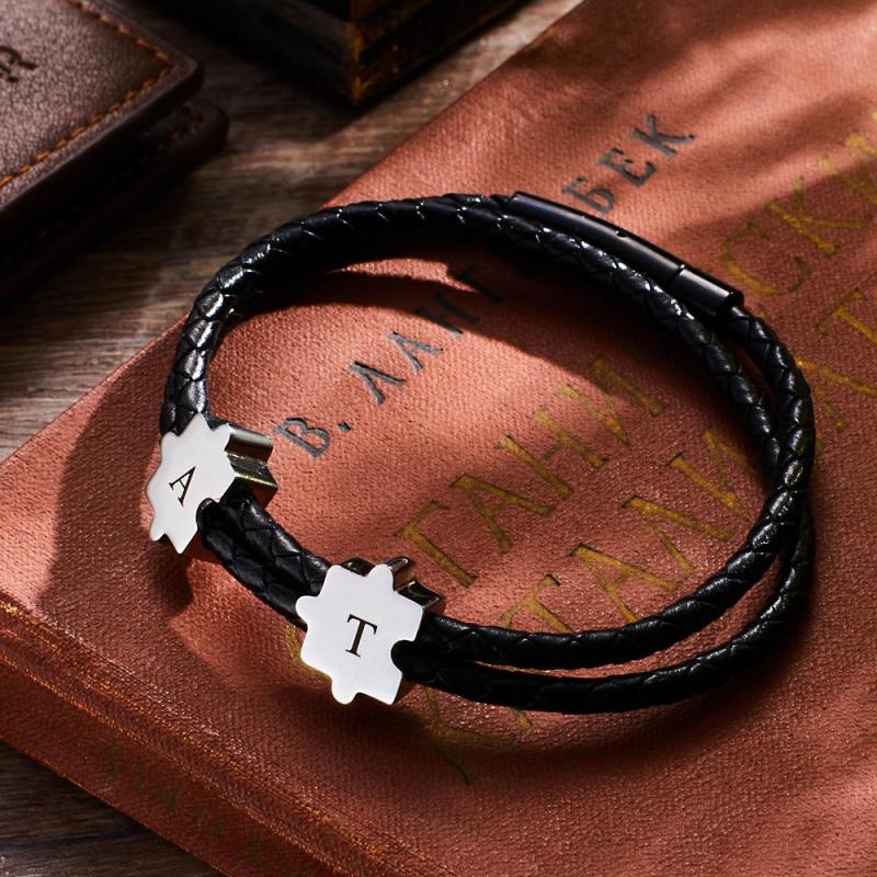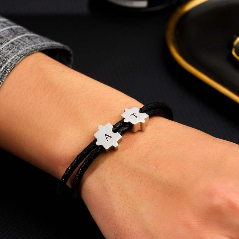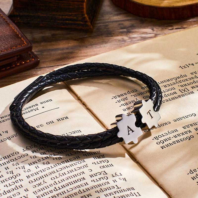 Pulsera Grabada Personalizada Con Forma De Rompecabezas, Nombre Personalizado, Regalo Para Hombres