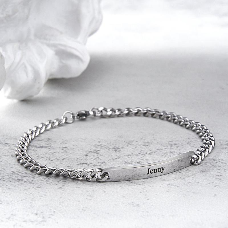 Cada pulsera es un lienzo para su toque personal, permitiéndole inscribir nombres, fechas significativas o símbolos íntimos mediante un grabado láser preciso. La pulsera para hombre, con unas dimensiones de 4,1 x 0,6 cm, y la pulsera para mujer, de 3,5 x 0,4 cm, vienen con una cómoda cadena de 20 cm, lo que garantiza un ajuste perfecto para ambos.