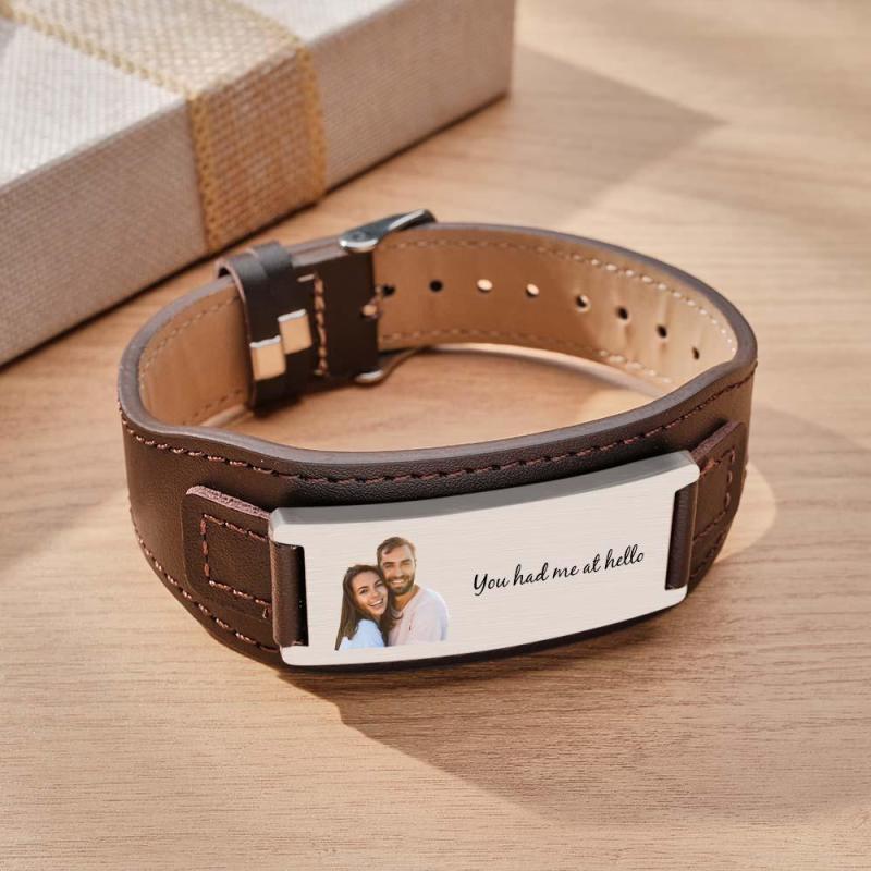 Pulsera Personalizada con Texto y Foto Regalo Sencillo de Cuero de Imitación para Hombre
