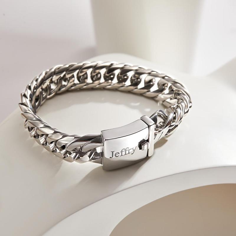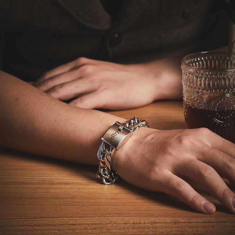 Estos artículos no solo se ven elegantes y con estilo por sí solos, sino que se ven fantásticos en capas. Algunos diseños se pueden personalizar con un grabado. El estilo de eslabón cubano de la cadena es extragrueso para darle a esta pieza una verdadera seriedad. En consecuencia, puedes poner cualquier nombre, fecha o mensaje que quieras en la superficie para personalizar la pieza para ti o para alguien a quien amas.