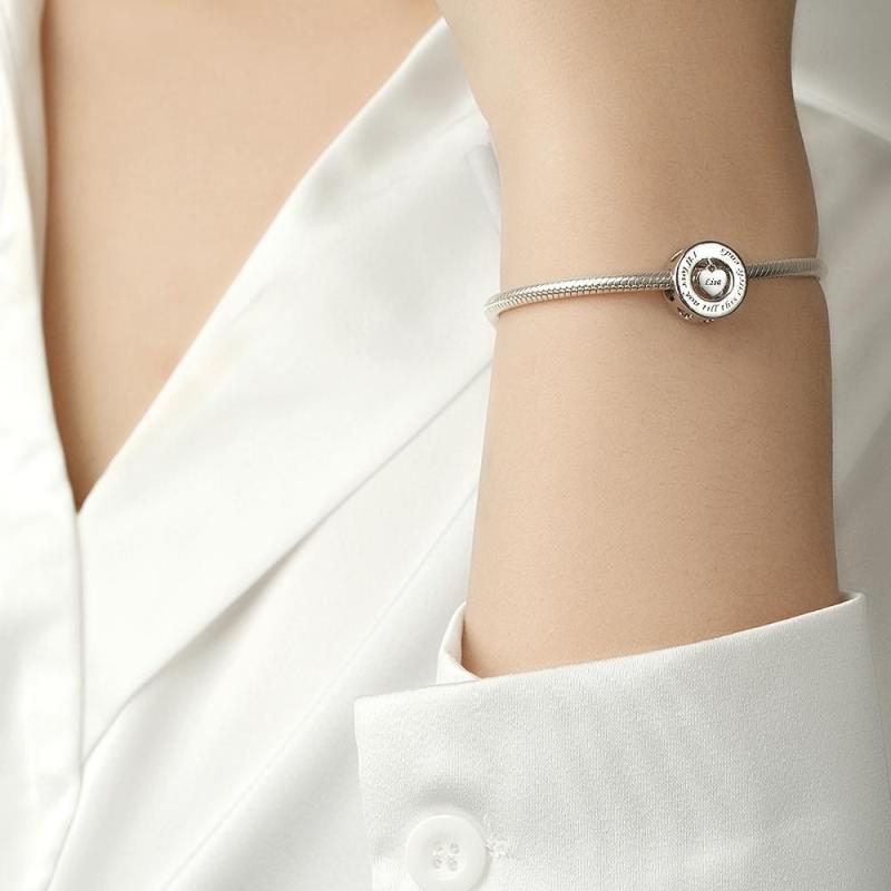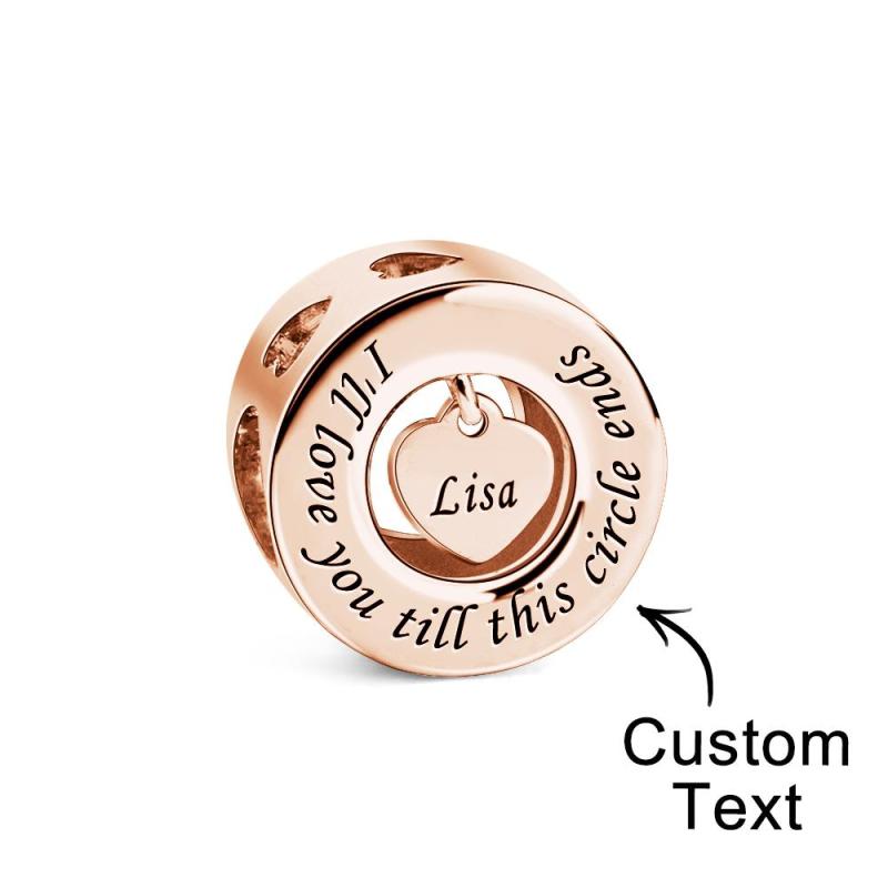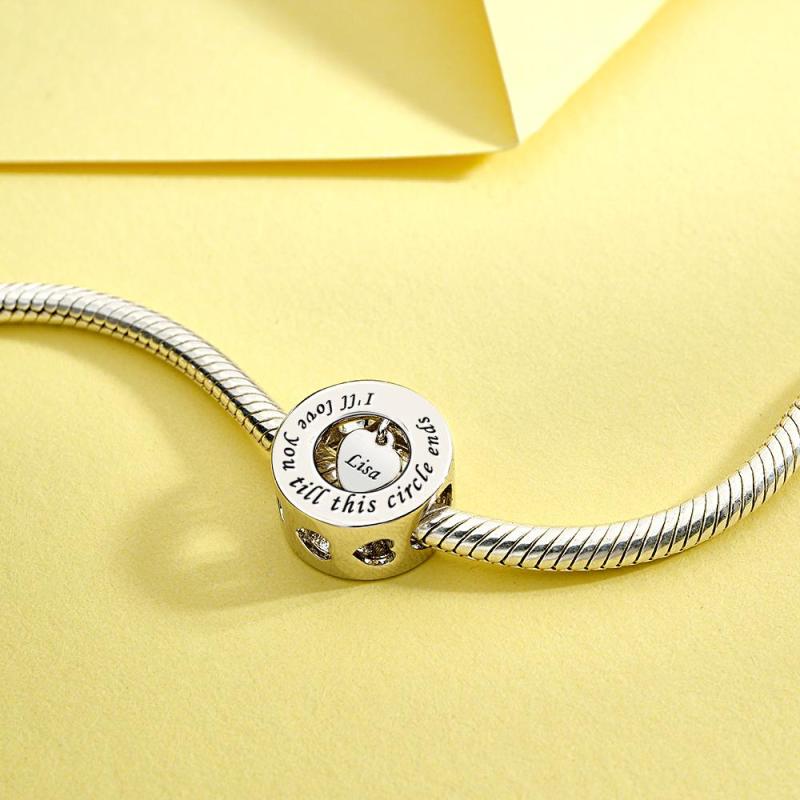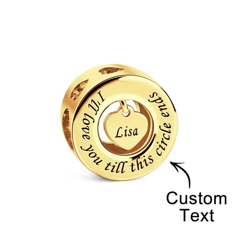Este dije grabable 'Te amaré hasta que termine este círculo' es una hermosa y romántica pieza de joyería perfecta para expresar tu amor a alguien especial. El charm presenta un diseño circular con la frase 'Te amaré hasta que este círculo termine' grabada en el borde, lo que agrega un toque sentimental al diseño. El charm también incluye un colgante en forma de corazón en el centro que se puede personalizar con tu propio grabado, convirtiéndolo en un regalo verdaderamente único y personalizado.
