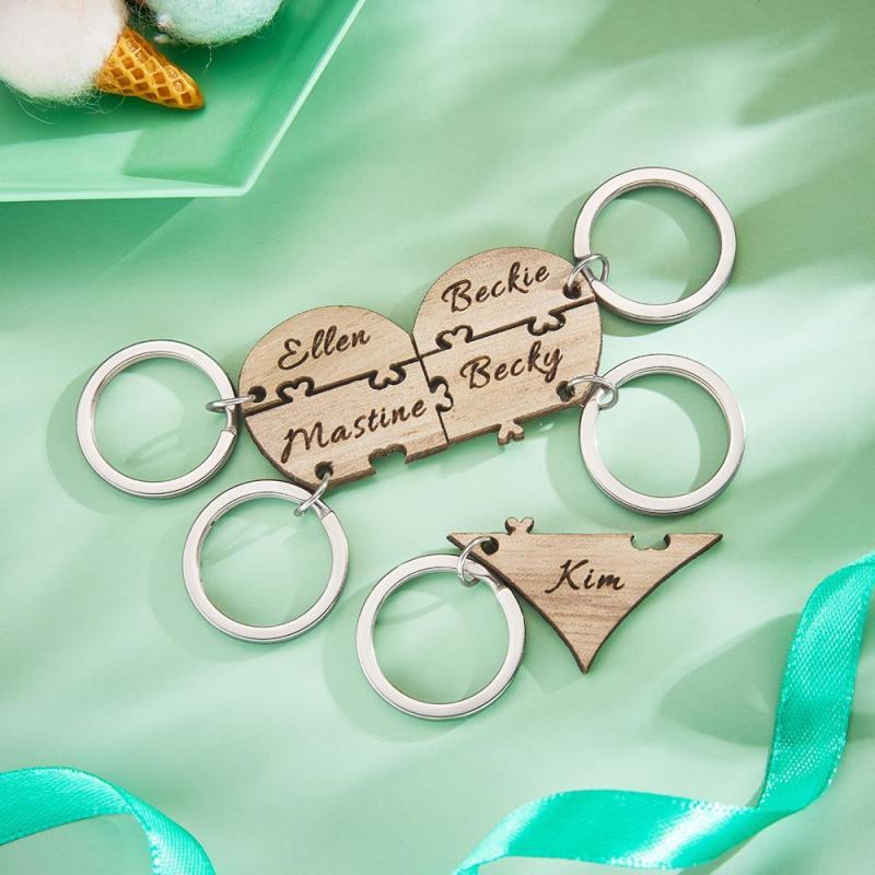 Este es un encantador llavero personalizado, que incluye cinco llaveros de piezas de rompecabezas de moda. Personalice su llavero especial para cinco amigos, cinco miembros de la familia o cinco socios. Grabe su fecha de aniversario, palabra de compromiso, apodo, temporal, etc. Póngaselo. Lleve el llavero con usted y se sentirán conectados entre sí. Conviértalo en su joya única y enorgullezca más de expresar su amor.