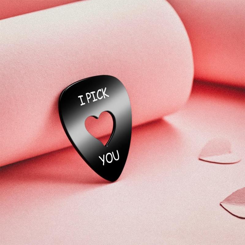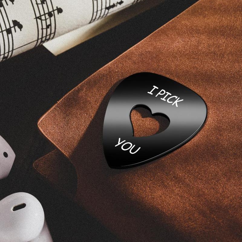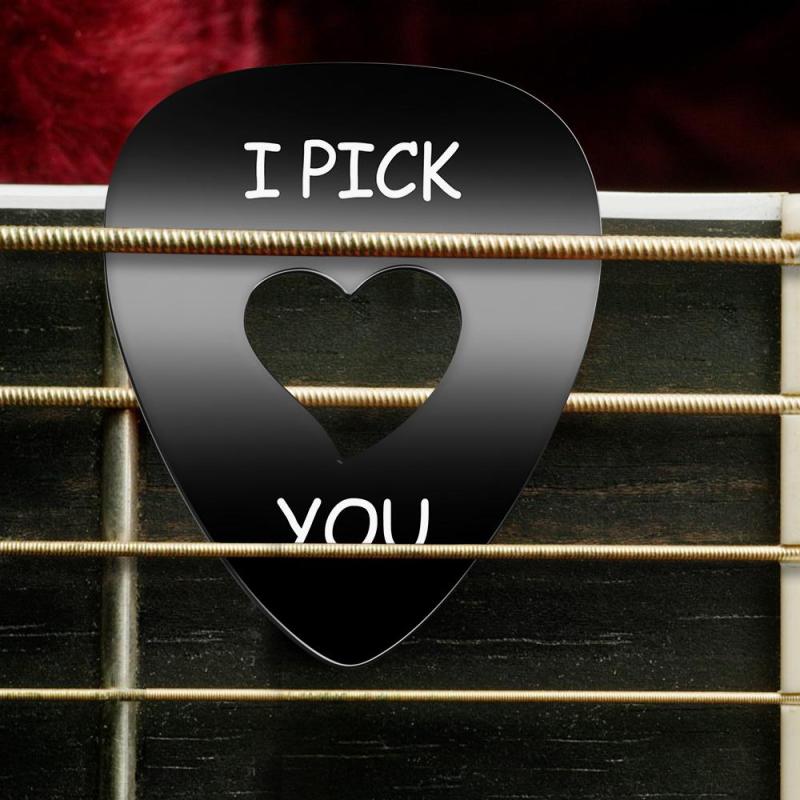 Púa de guitarra grabada personalizada en forma de corazón, negro hueco, regalos conmemorativos
