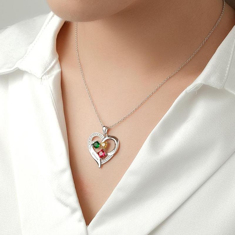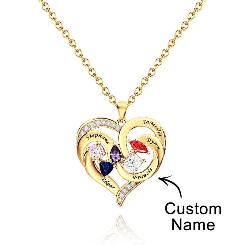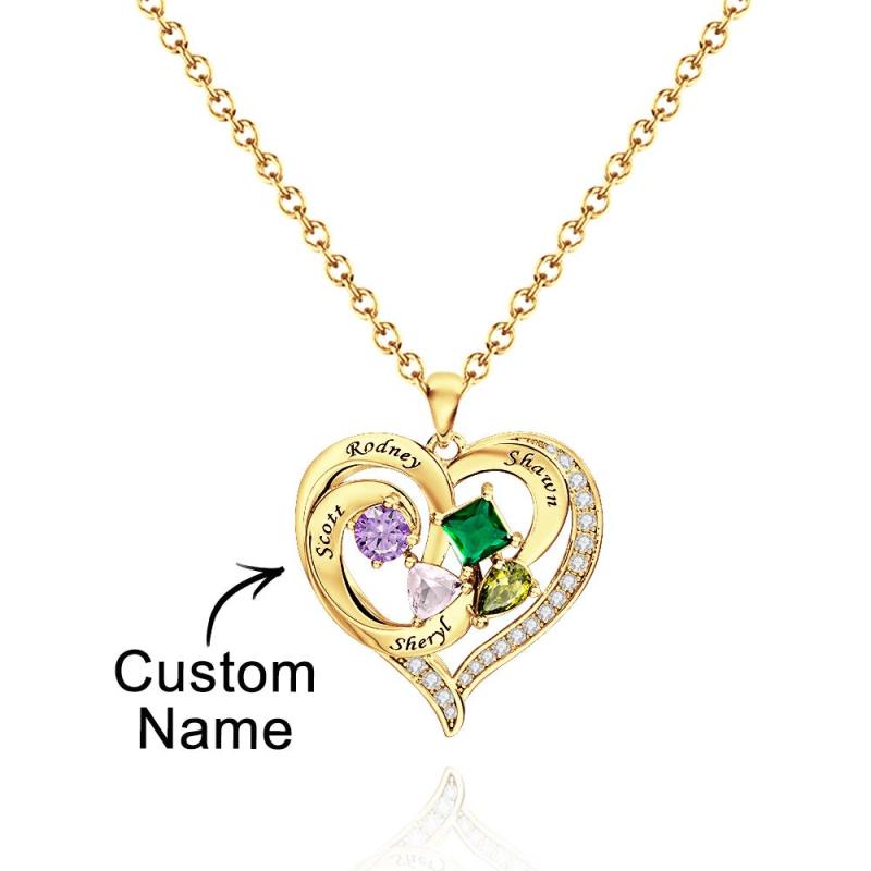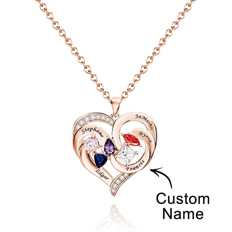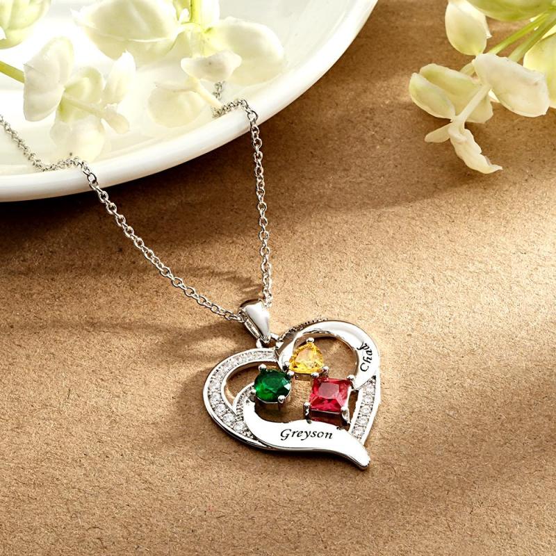 Collar De Corazón Grabado Personalizado Con Regalos De San Valentín Con Piedras Natales De Formas Variadas