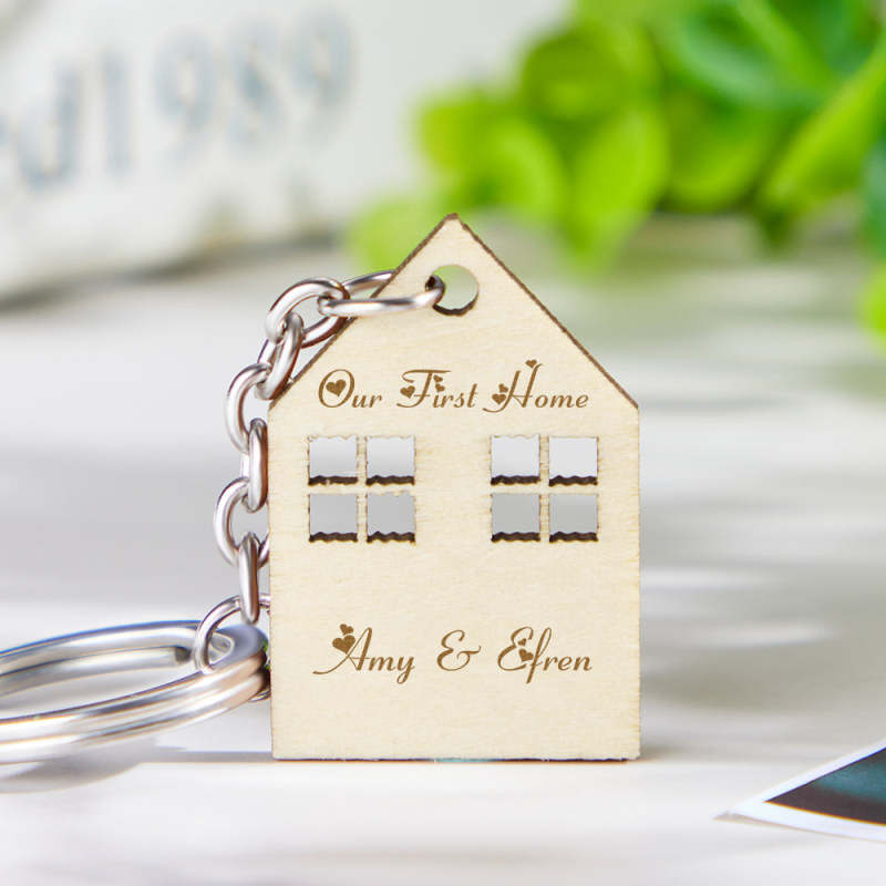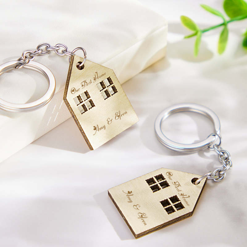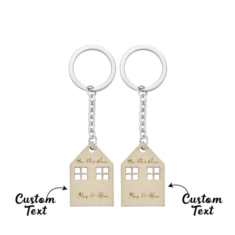 Estos llaveros de 2 piezas tienen forma de casa y están grabados con su texto personalizado. Si está buscando un regalo único para alguien que recientemente compró o se mudó a una nueva casa o una pareja casada, sus amigos, hijo, hija, compañero de trabajo o que está comenzando su primera casa juntos, este llavero es una gran inauguración de la casa. regalo. Una dulce sorpresa para su familia, amigos, esposo o esposa para su nuevo hogar.