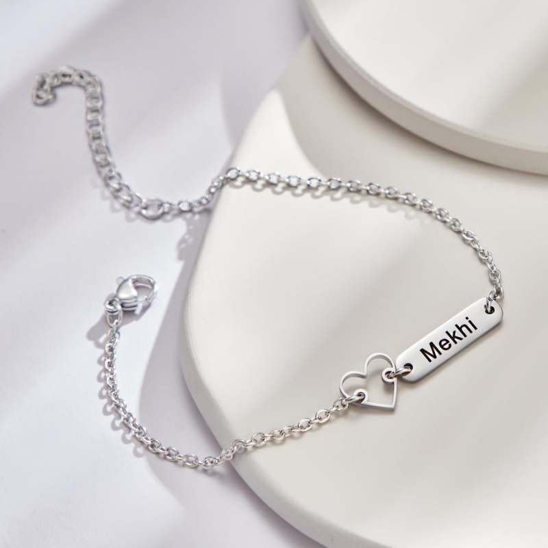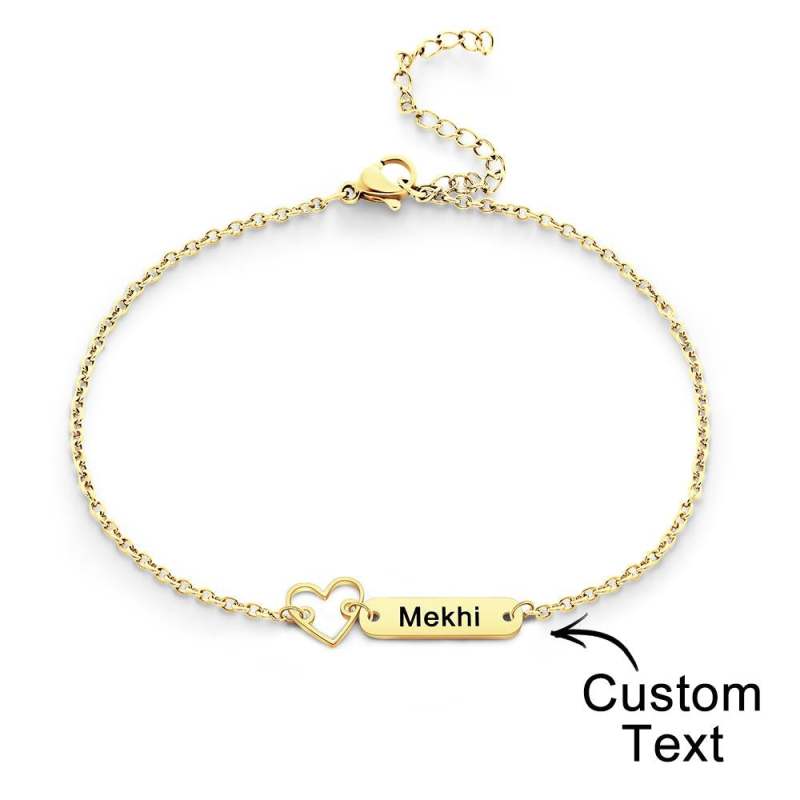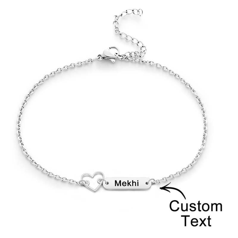 Las pulseras con nombre están a la moda y son una excelente manera de mostrar algo personal y único. También puede obtener una palabra favorita para que le brinde algo de inspiración durante el día. Además de los acabados plateados, también están disponibles las opciones de oro amarillo y oro rosa. Mezcle y combine metales para crear su propia creación apilada única y colorida. Las pulseras con nombre como esta también serían fantásticas opciones de regalos para amigos y familiares en tu vida. Compre de todo, desde pulseras con amuleto con nombre y pulseras con placa hasta brazaletes con nombre y pulseras ajustables con nombre.