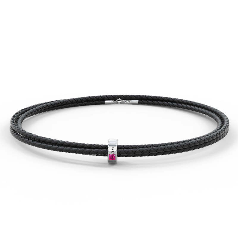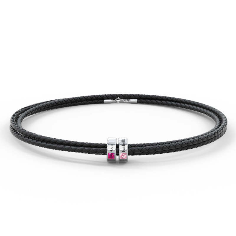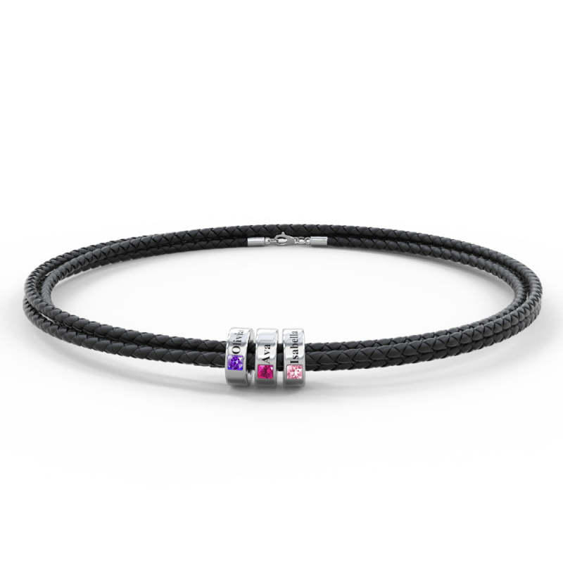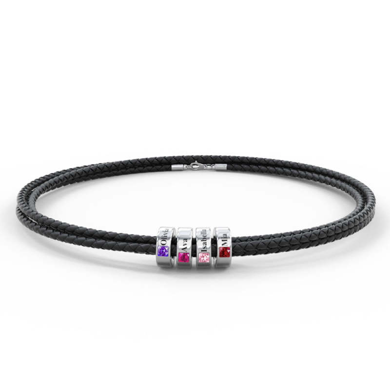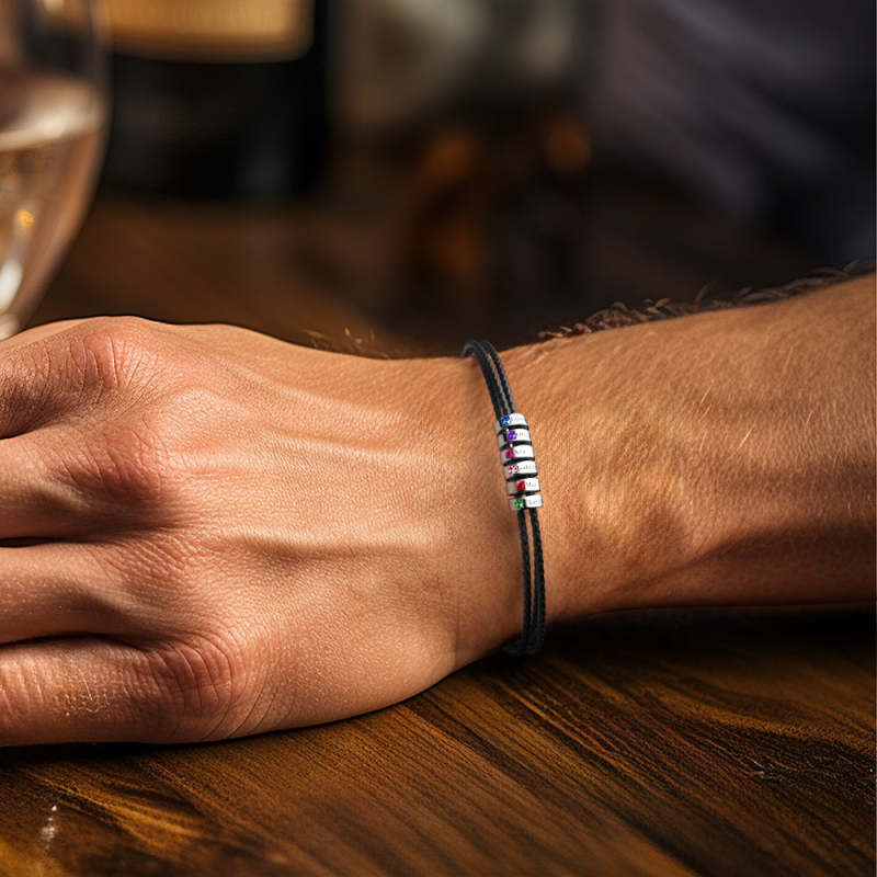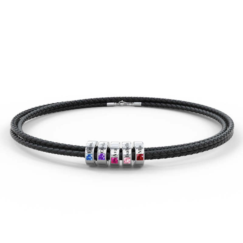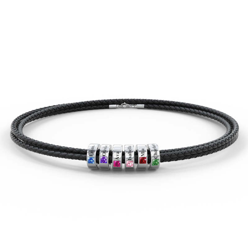 Pulsera De Cuero Con Nombre Grabado Personalizado Y Cuentas De Piedra Natal Para Él
