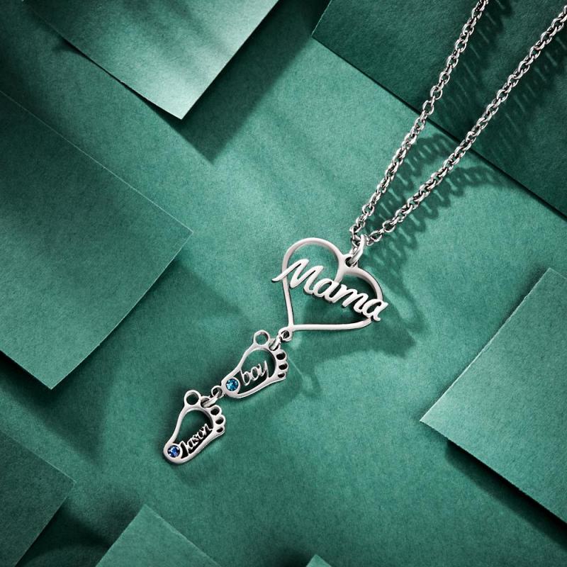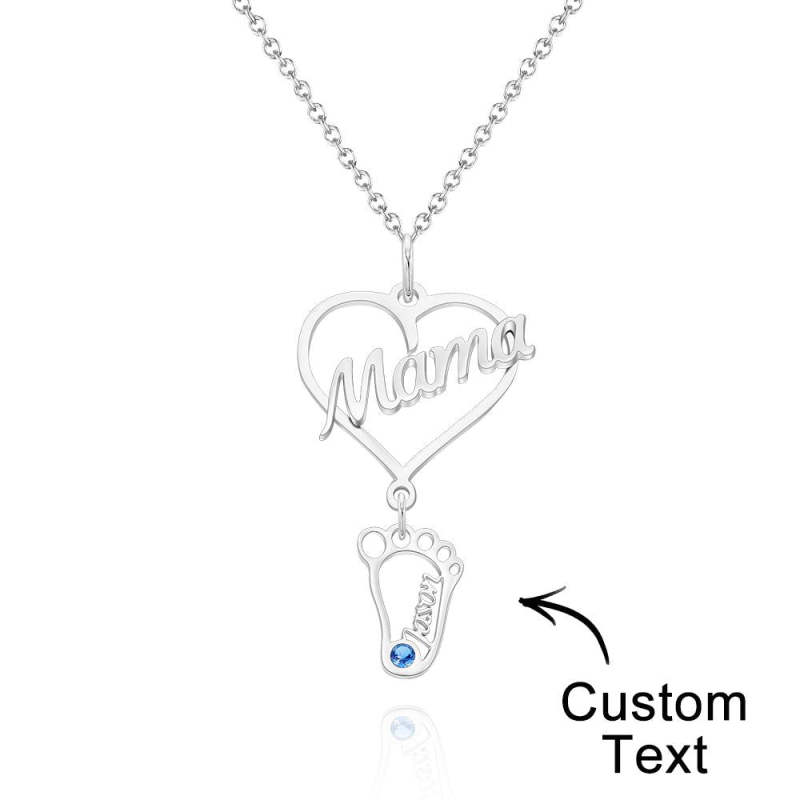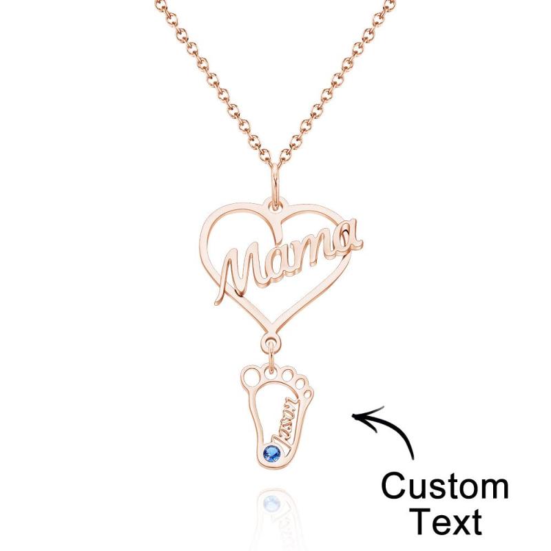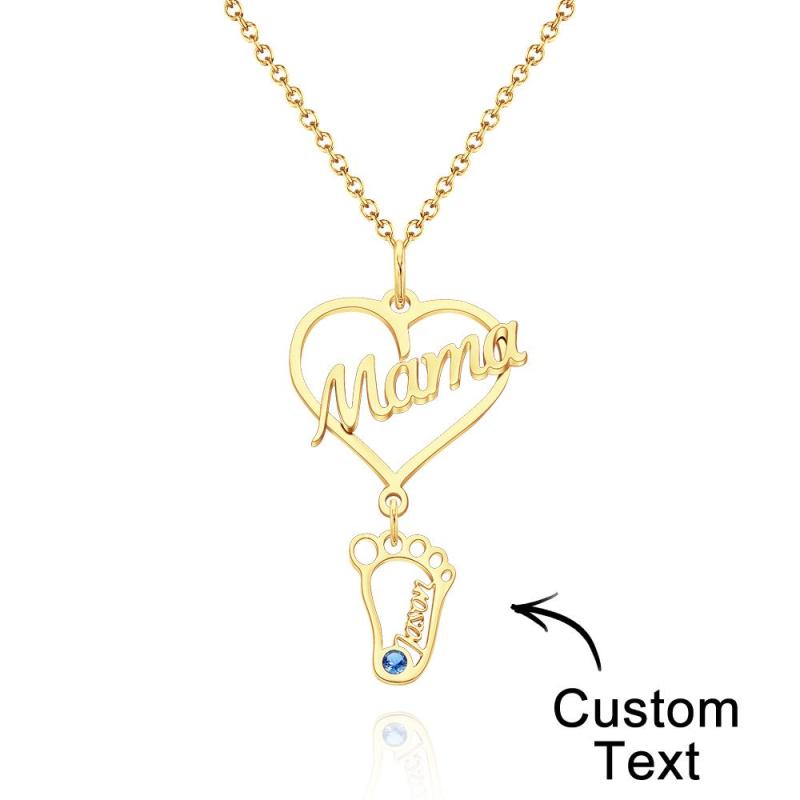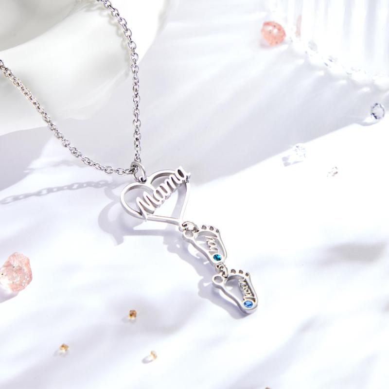 Collar Con Nombre Grabado Personalizado Love Mama Heart With Diamonds Baby Feet Charm