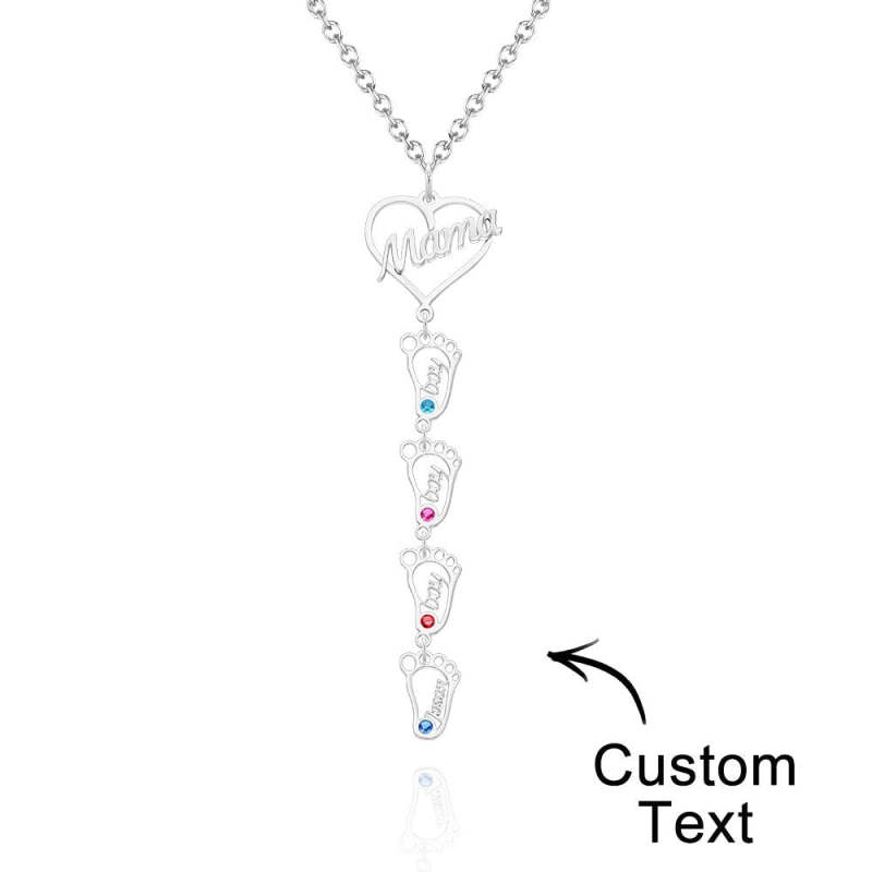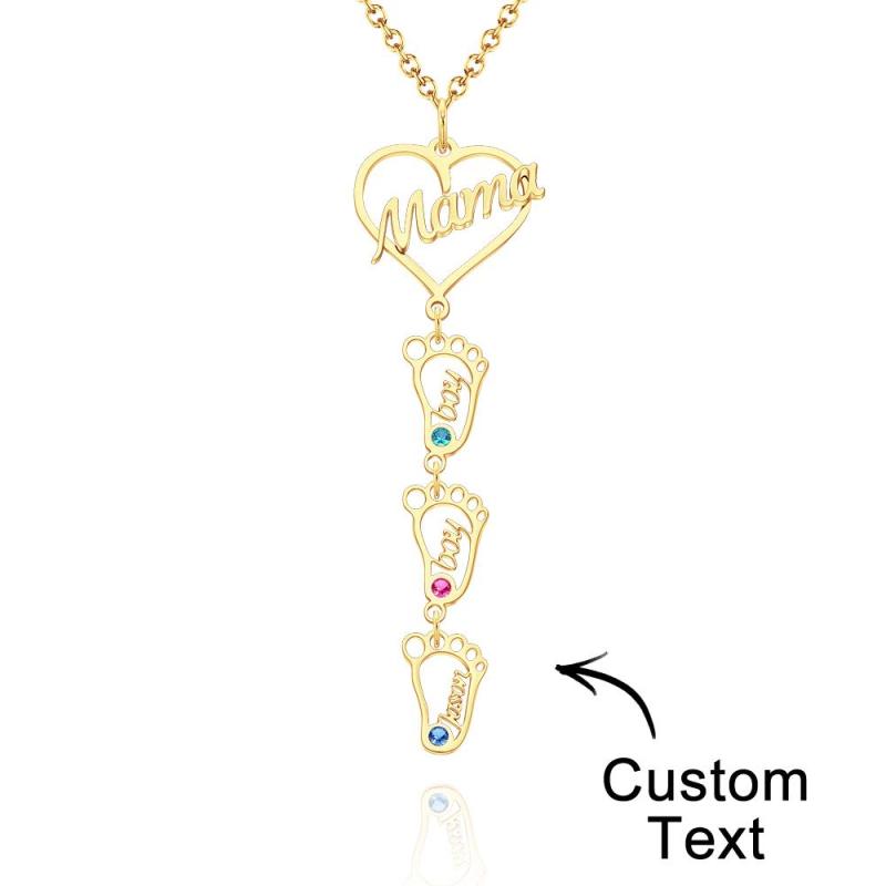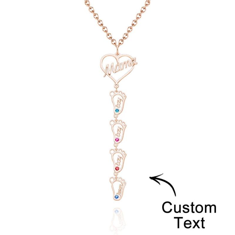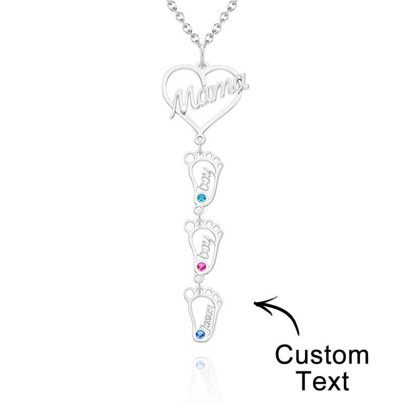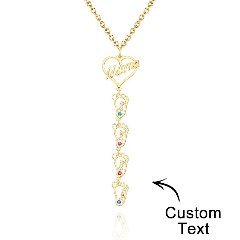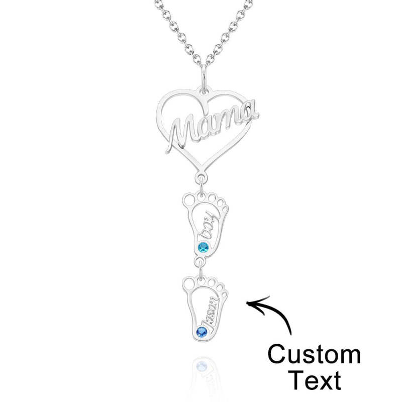 Collar Con Nombre Grabado Personalizado Love Mama Heart With Diamonds Baby Feet Charm
