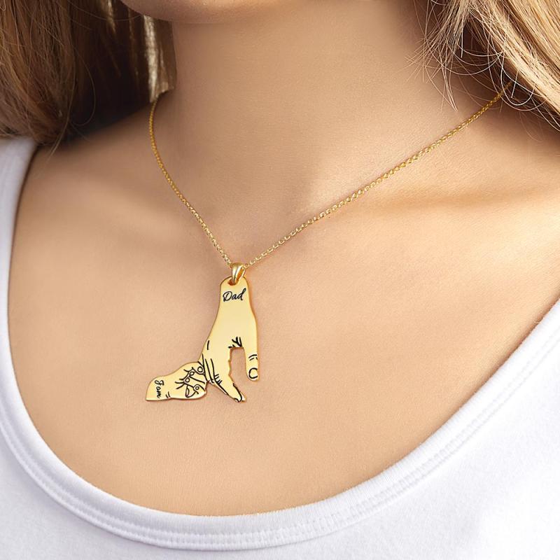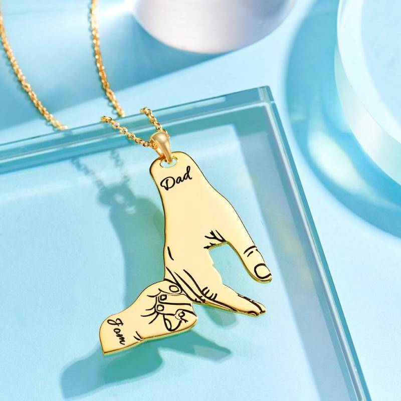 Collar Grabado Personalizado Manos Grandes Manos Pequeñas Nombre Collar Regalo Creativo