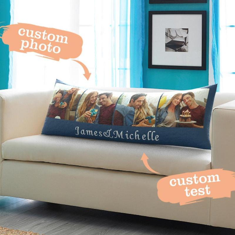 Almohada de tiro largo con foto tallada personalizada, un popular regalo de inauguración de la casa para los recién casados, esta es una almohada de tiro rectangular. La longitud de esta almohada de tiro es extremadamente larga. Puede personalizar el texto y las imágenes en la almohada, y puede personalizar las fotos de usted y sus seres queridos en la almohada. Al mismo tiempo, también puedes personalizar las fotos entre tus amigos recién casados y sus amantes, creo que les encantará este regalo de bodas.