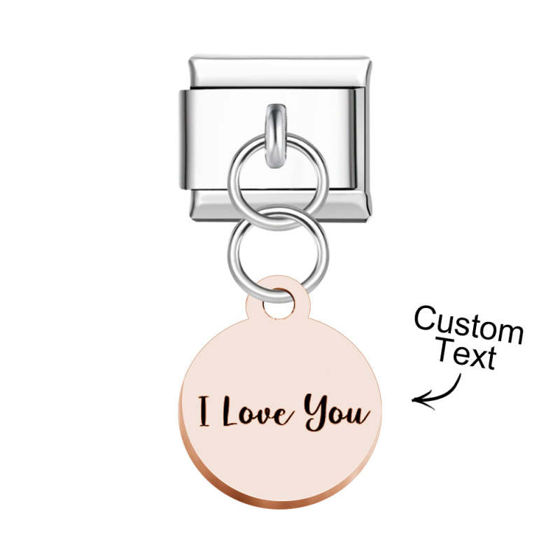 Los dijes italianos son enlaces modulares con resorte que se abren para conectarse entre sí. La altura es de 0,9 cm y el ancho es de 1 cm. Combinados, crean una pulsera personalizada con su toque personal.