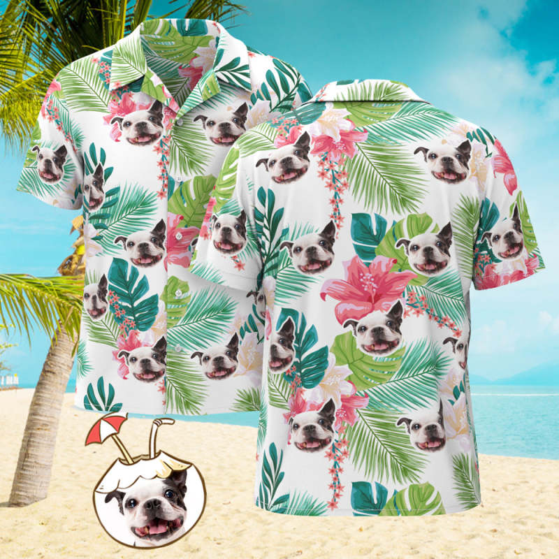 Camisa Hawaiana Con Estampado De Cara Personalizada Camisa Divertida Con Hojas Y Cara De Mascota