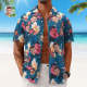 Camisa Hawaiana Para Hombre Con Estampado De Cara Personalizada, Flores Rosas Y Monstera Deliciosa