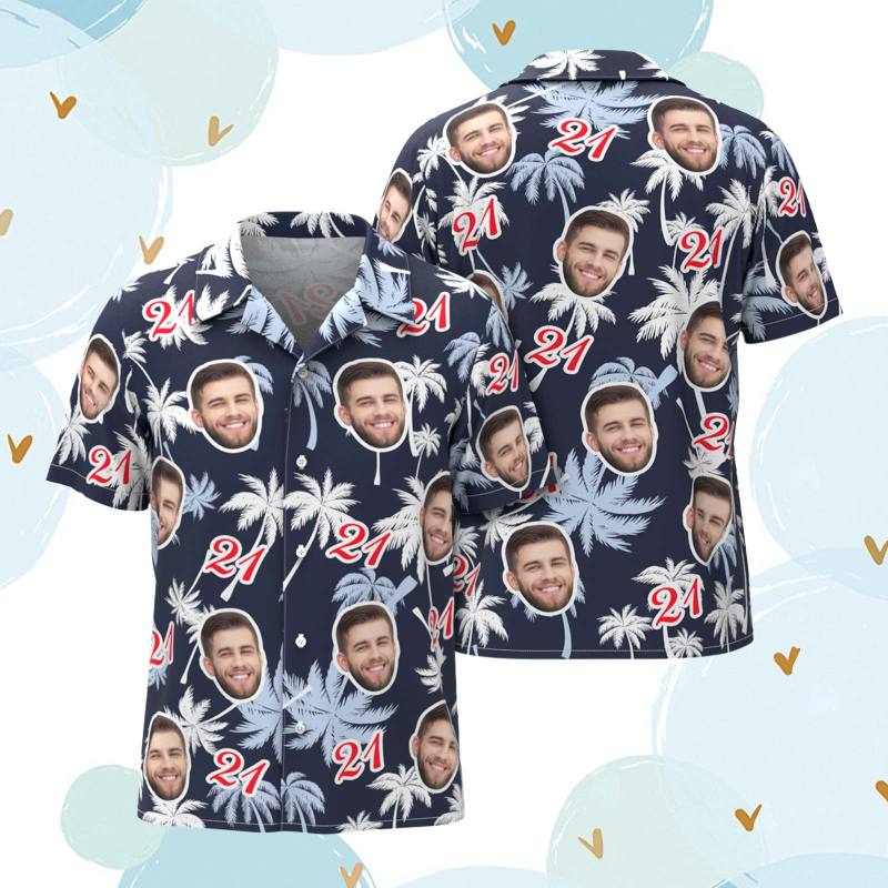 Cara Y Número Personalizados Regalo De Cumpleaños Del Día Del Padre Camisas Hawaianas Camisa De Árbol De Coco