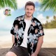 Camisa Hawaiana Con Cara Personalizada, Camisa De Playa Hawaiana Con Estampado Integral Popular Para Hombre, Regalo Navideño - Flores Blancas
