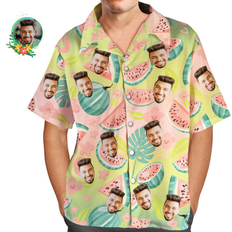 Camisa Hawaiana Aloha Con Estampado Integral Para Hombre Con Cara Personalizada, Sandías Y Verano