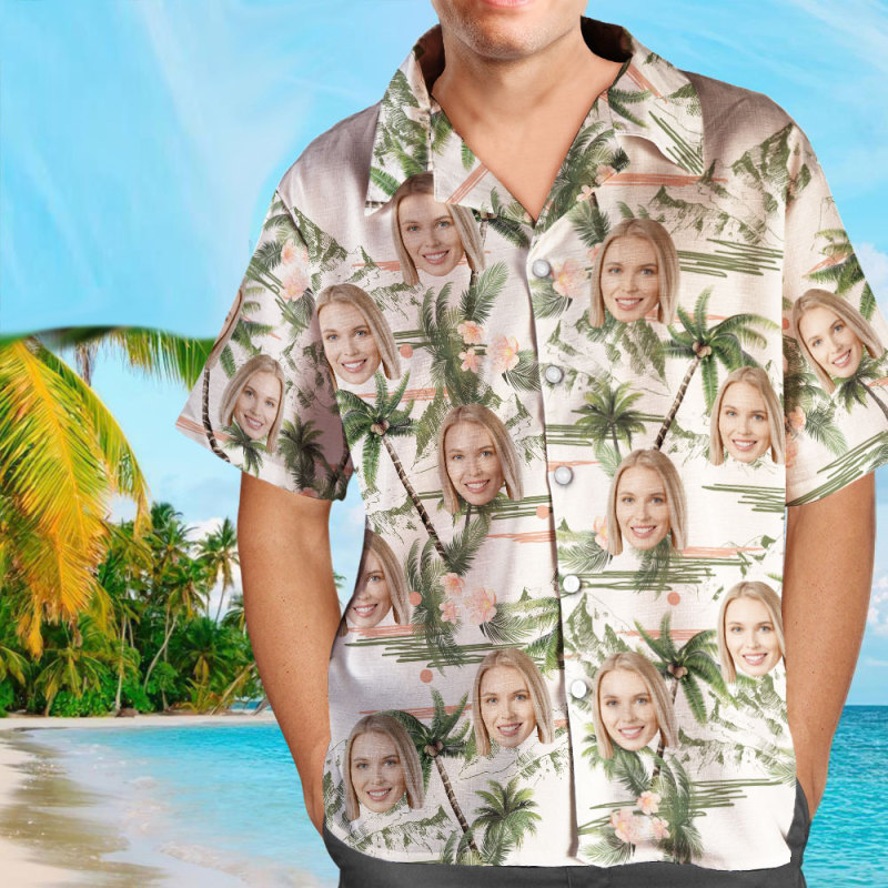 Camisa Hawaiana Personalizada Con Cara Personalizada Con Estampado De Árbol De Coco
