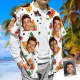 Camisa De Cara Personalizada Pizza Y Hojas De Menta Camisa Hawaiana De Verano Unisex