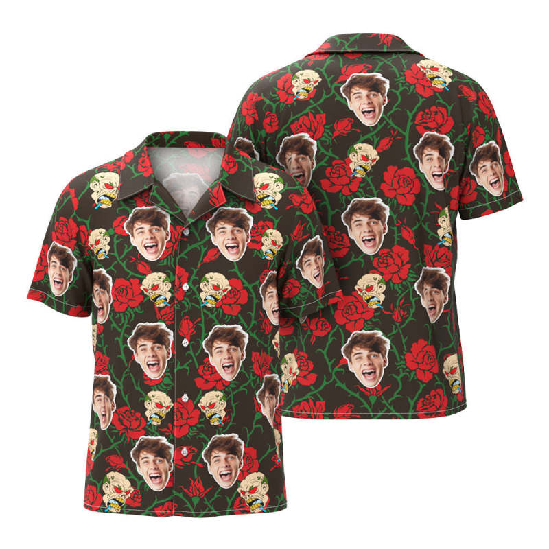 Camisa Hawaiana Con Cara Divertida Personalizada, Camisa Con Foto De Halloween, Regalo De Drama De Halloween Con Rosa Y Mueca