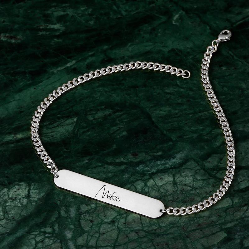 Esta hermosa pulsera se puede personalizar con nombres, iniciales, fechas, frases, números romanos o coordenadas. Grabado con fechas o coordenadas, es un regalo muy popular para damas de honor, personalizado con nombres de ni?os o nietos, perfecto regalo de Navidad para su esposo o novio. Pulsera de hombre personalizada Pulsera de cadena con nombre individual Grabado Pulsera de regalo Partner - Chapado en oro