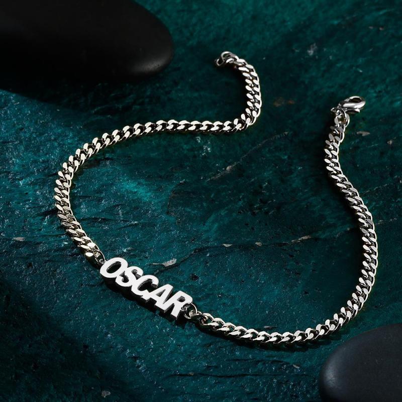 Esta hermosa pulsera se puede personalizar con nombres, iniciales, fechas, frases, números romanos o coordenadas. Grabado con fechas o coordenadas, es un regalo muy popular para damas de honor, personalizado con nombres de ni?os o nietos, perfecto regalo de Navidad para su esposo o novio. Pulsera de hombre personalizada Pulsera con nombre elegante Regalo hipoalergénico para esposo - Chapado en oro