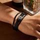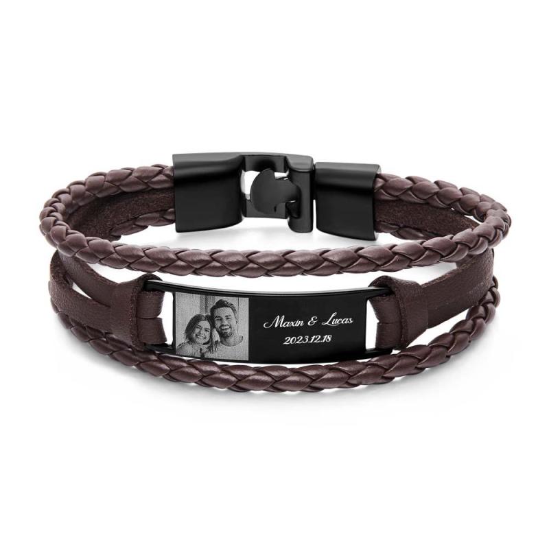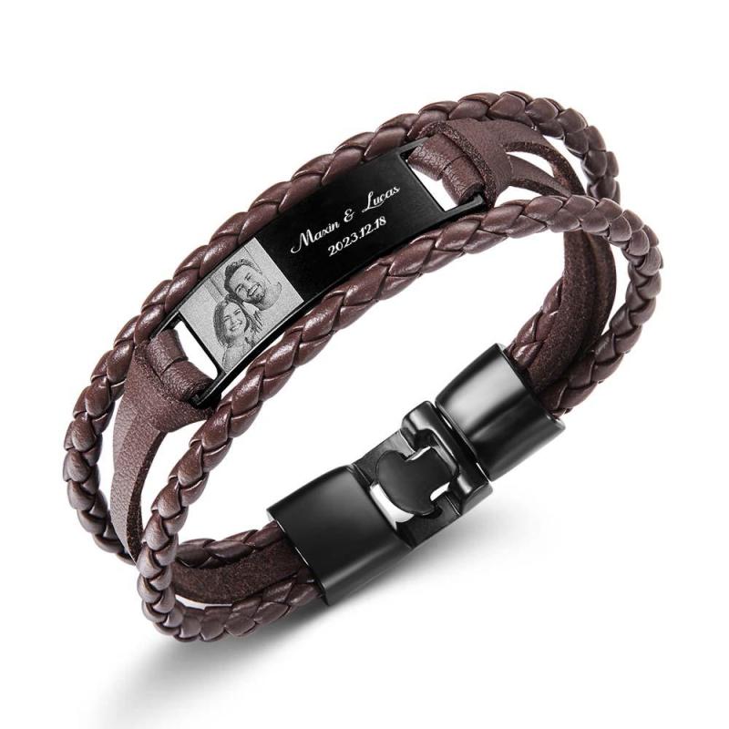 Regalos de joyería clásica masculina personalizables para hombres.Pulsera de hombre minimalista y limpia de cuero de moda con grabado. El regalo perfecto para papá, padre, hijo, novio, marido. Sorprenda a sus seres queridos con un gran regalo para su cumpleaños, Navidad, Día del Padre, Día de San Valentín o cualquier otra ocasión. Hecho de cuero negro de alta gama, cierre de acero inoxidable y placa de metal plateado. Las imágenes exquisitamente impresas y el texto cuidadosamente tallado le dan a su ser querido un toque duradero.