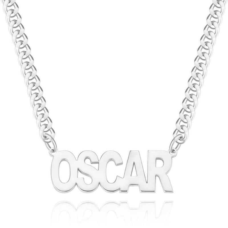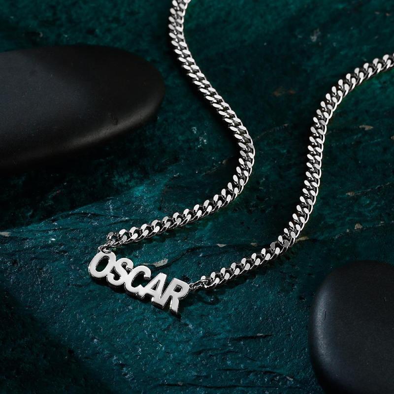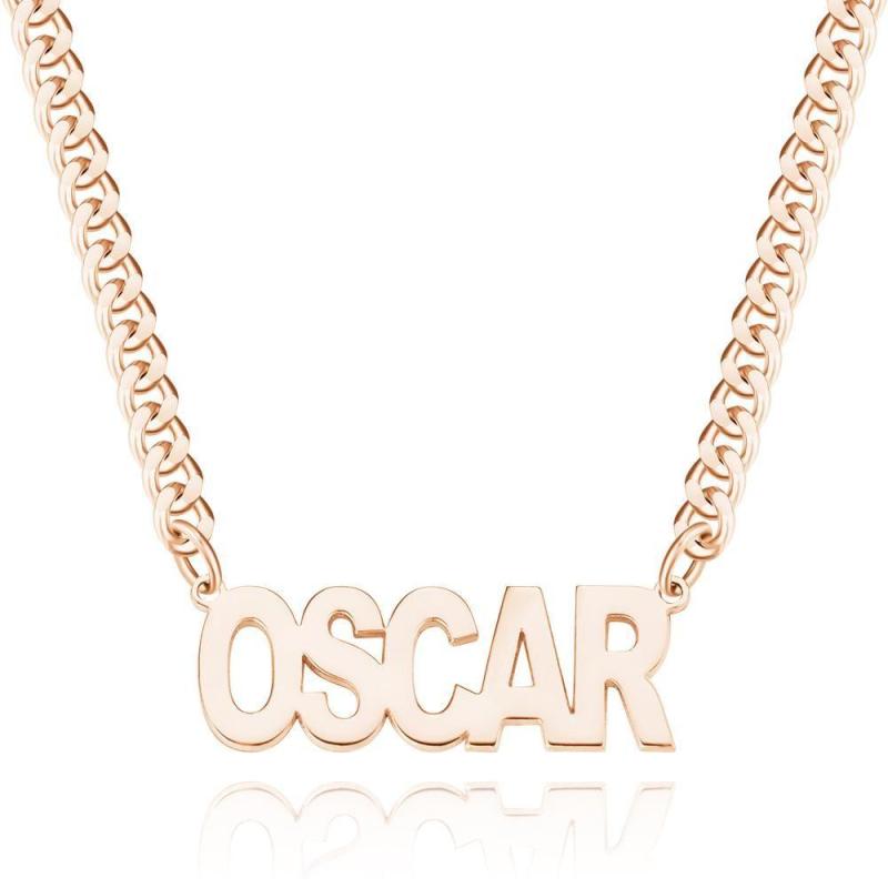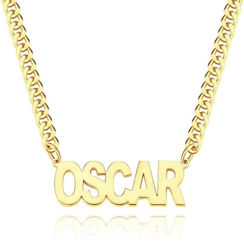?Nada es más elegante que una simple cadena audaz! Este collar tiene una fuente más delicada que nuestro Collar con nombre personalizado habitual, por lo que se adapta muy bien como un collar de gargantilla. Personalízalo con cualquier nombre o palabra que elijas. Collar personalizado para hombre Collar de cadena gruesa para novio - Chapado en oro