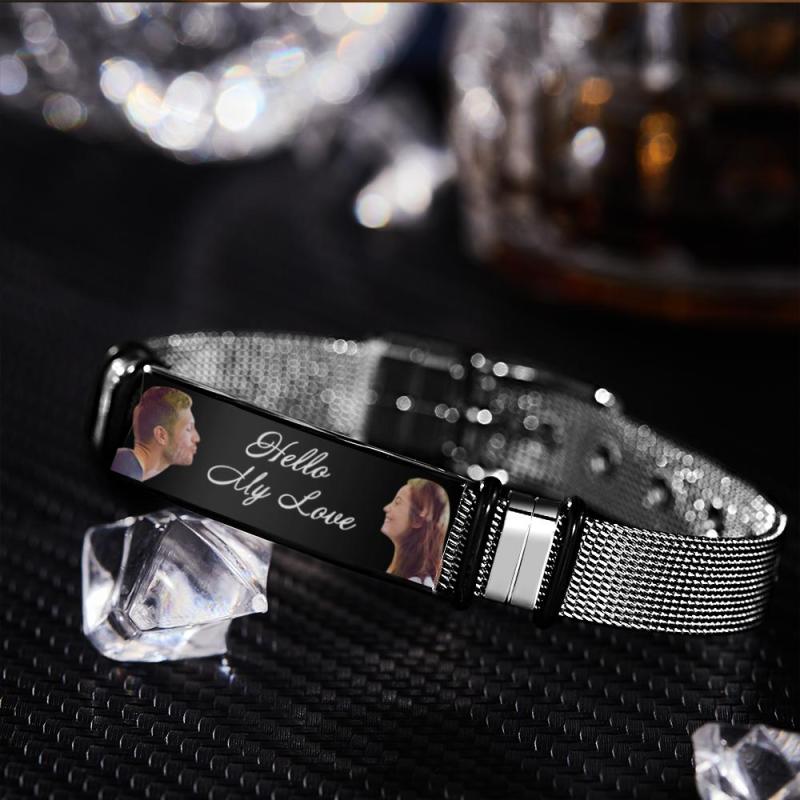 Esta pulsera única es el mejor regalo perfecto para él. Hecha de acero inoxidable, representa que tu amor por él podría durar para siempre. Personaliza el código de Spotify brazalete, con foto y palabras grabadas, elija su canción, foto y palabras favoritas, todo se puede imprimir en el brazalete y puede generar un código spotify único. Puede escanear el código en la aplicación de Spotify, después de escanear el código, su canción comenzará a reproducirse inmediatamente. Es un regalo perfecto para varias ocasiones como el día del padre, navidad, acción de gracias. ¡Es un recordatorio de que el padre y las hijas nunca se despiden!