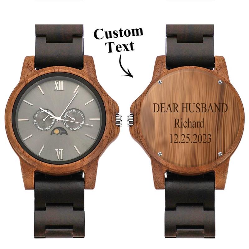 - Regalo de aniversario atento:Sorprenda a su esposo con un regalo de aniversario atento y personalizado que captura la esencia de su viaje juntos. El reloj de madera grabado personalizado para hombre es un símbolo de amor duradero y momentos compartidos.