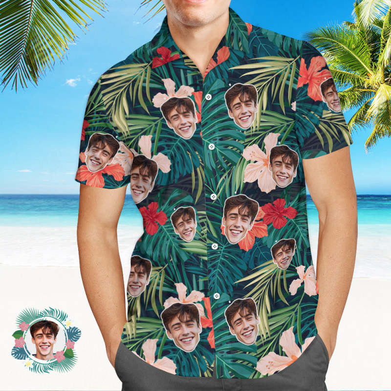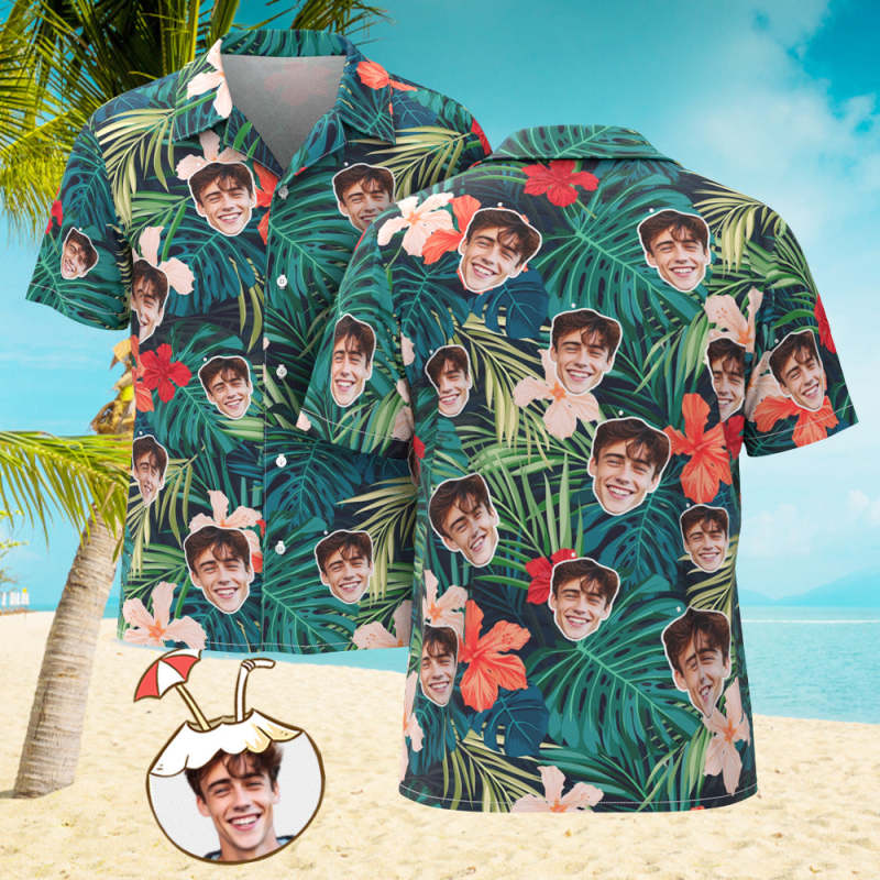 Camisa De Hombre Personalizada Con Estampado De Cara, Camisa Hawaiana, Bosque Tropical