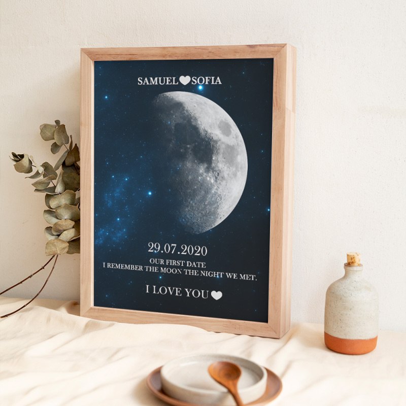 Regalos De Aniversario Personalizados Con Marco De Impresión De Fase Lunar Para Ella