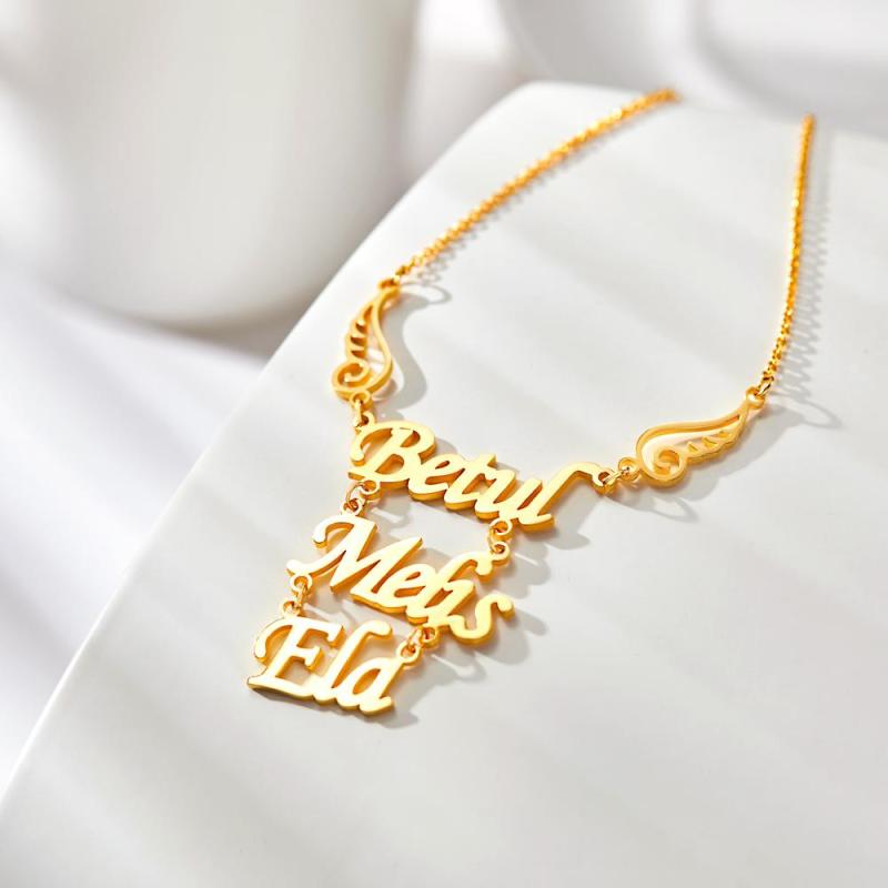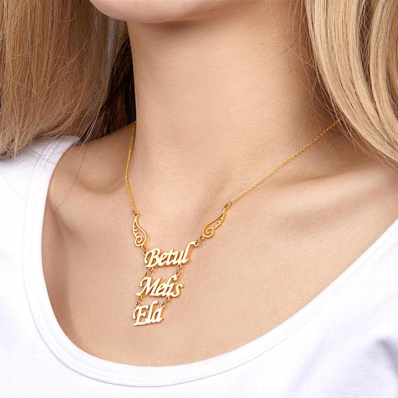 Collar Con Nombre Personalizado, Collar Con Colgante De Alas De Ángel, Regalo De Cumpleaños Para Mujer