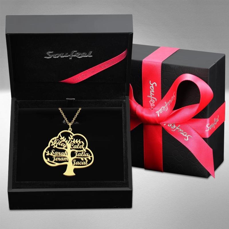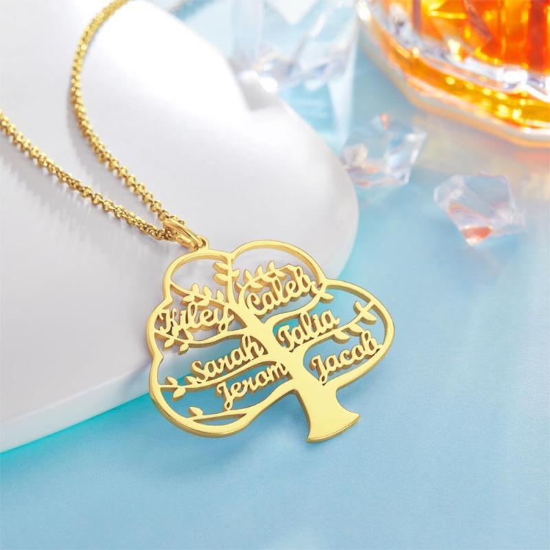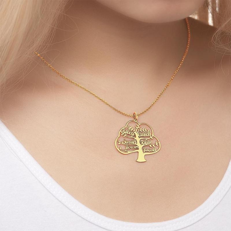 Collar de Nombre Personalizado Collar de árbol de la Vida Colgante de Nombre Regalo Conmemorativo Chapado en Oro de 14 K 1-6 Nombres