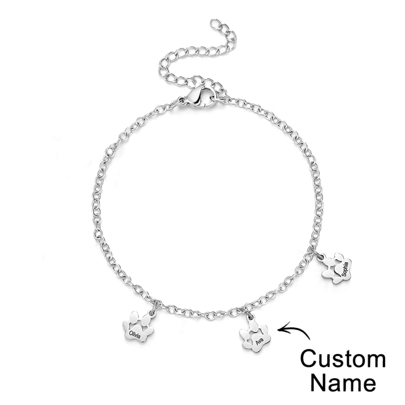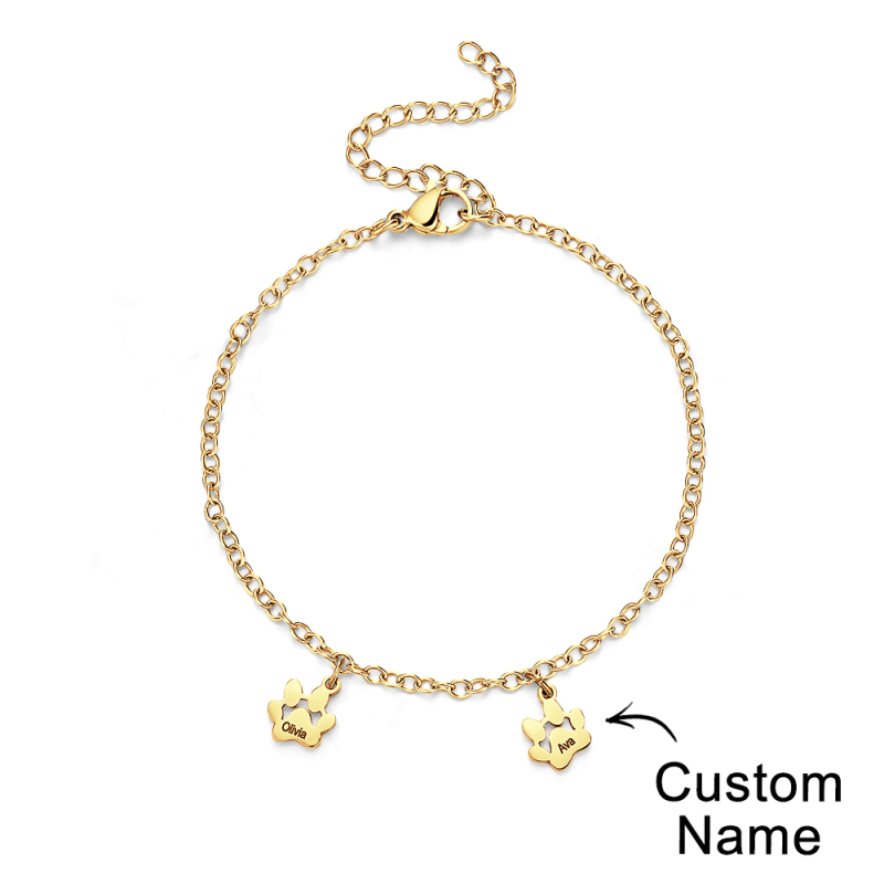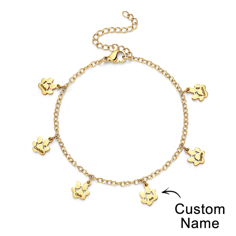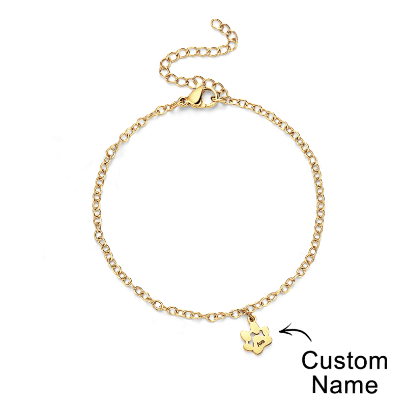 Pulseras personalizadas con nombre y estampado de patas colgantes minimalistas, ¡el accesorio perfecto para todos los amantes de las mascotas! Estas delicadas pulseras están adornadas con adorables huellas de patas que capturan la esencia de tu amigo peludo. Cada pulsera se puede personalizar con el nombre de su mascota, añadiendo un toque personal a esta ya exquisita pieza. Si eres un amante de los perros y los gatos, nuestras pulseras minimalistas con patas están diseñadas para mostrar tu amor por las mascotas de una manera minimalista y elegante. Hechas a mano con amor y atención al detalle, estas pulseras son el regalo ideal para usted o un compañero entusiasta de las mascotas. Lleve el nombre de su mascota con orgullo y manténgala cerca de su corazón con nuestras pulseras personalizadas con la pata y el nombre de su mascota. ¡Compre ahora y abrace el vínculo entre usted y su compañero peludo!.