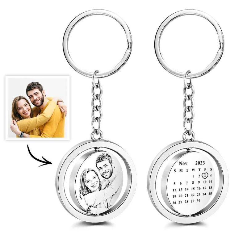 Este es un creativo llavero de doble cara con calendario fotográfico. El diseño de todo el cuerpo es simple, puede personalizar las fotos de usted y su amante en el frente, y su aniversario se puede personalizar en la parte posterior. Este es un llavero de metal perfecto con buen material, tamaño pequeño y fácil de llevar. Adecuado para aniversario/Día de San Valentín/confesión y otras ocasiones.