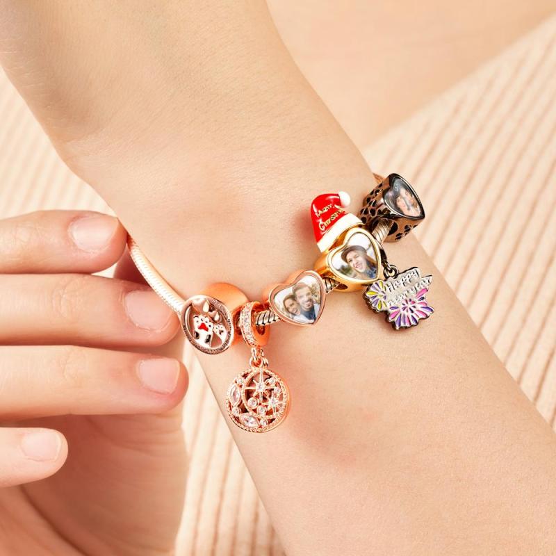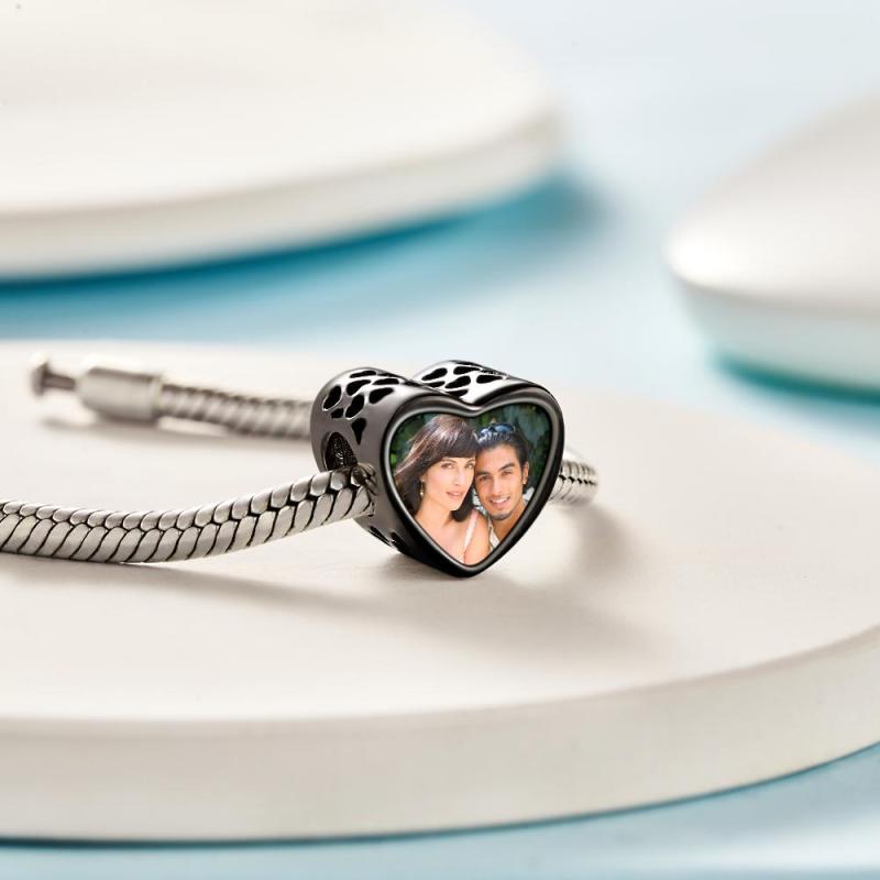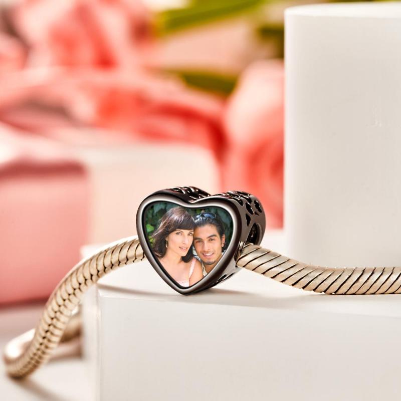 Abalorio Con Foto Personalizada, Abalorio De Corazón, Chapado En Negro, Regalo Para Amante