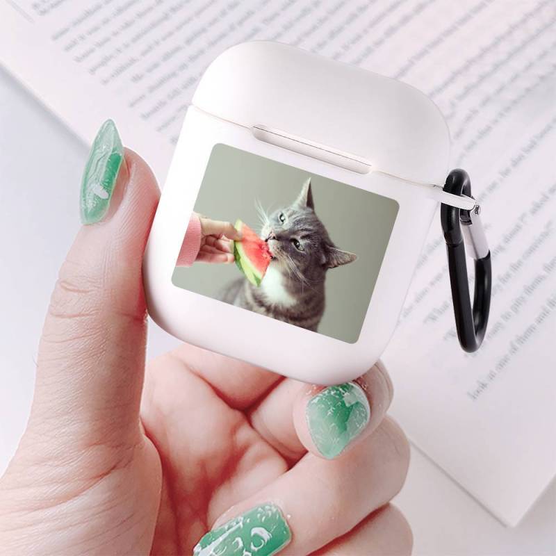 Personalizado Foto Funda Case para Auriculares AirPods Gato - Blanco